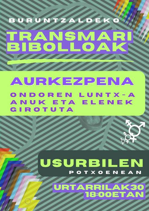 Ordua: 18:00.Tokia: Potxoenea.Zehaztasunak: “Urteari ekitearekin batera Buruntzaldeko transmaribibolloen aurkezpena egingo dugu Usurbilen”, iragarri dute Buruntzaldeko transmaribibolloen mugimenduak. Ekitaldiak bi zati izango ditu; batetik, aurkezpena izango da eta, segidan, Anuk eta Elenek girotutako luntxa.Antolatzailea: Buruntzaldeko transmaribibolloak.