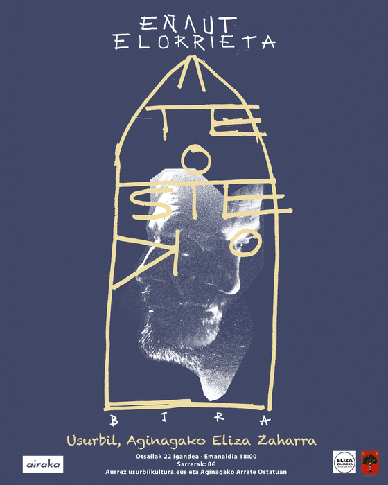 Ordua: 18:00.Tokia: Aginagako Eliza Zaharra. Zehaztasunak: "Fantasia diskoa aurkezteko bira amatuta, eta, hurrengo lan luzea ondu biartean, ATEOSTEKO BIRA eskainiko du Eñaut Elorrietak. Bira txiki eta berezia izango da. Antzokietatik irtenda, eliza, ermita eta baselizak lehenetsiko ditu ATEOSTEKO BIRAK. Harrizko hormak, egurrezko eserlekuak eta ahots lurtar bat: kantua kultuzko keinu gisa. Elizaren oihartzunaren kontra tematu beharrean, pareten erantzunarekin jolastuko du. Elorrietak, harriari ahotsa ateraz, beste garai batzuetako kantuen memoria aktibatuz. Soinu eta argi-ekipo soil eta zainduarekin, ahots eta gitarra hutsez eskainiko du Eñaut Elorrietak bere ibilbide osoko kanten aukeraketa zabala. Kontzertu zuzenak eta biluziak izango dira, herri-kanturen eta esperimentazioaren artean, ahotsaren posibilitateetan arakatuko dutenak".Sarrerak: 8 eurotan usurbilkultura.eus plataforman eta Aginagako Arrate ostatuan.Antolatzaileak: Aginagako Eliza Zaharra Elkargunea eta Usurbilgo Udala.