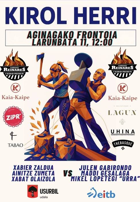 Harri-jasotze eta aizkolaritza probak tartekatuko ditu ekitaldiak. Sei kirolari lehiatuko dira, hiruna kideko bi taldeen arteko norgehiagoka izango da. Alde batetik, Xabier Zaldua, Ainitze Zumeta eta Xabat Olaizola lehiatuko dira; Julen Gabirondo, Maddi Gesalaga eta Mikel Lopetegi "Urra", bestetik.