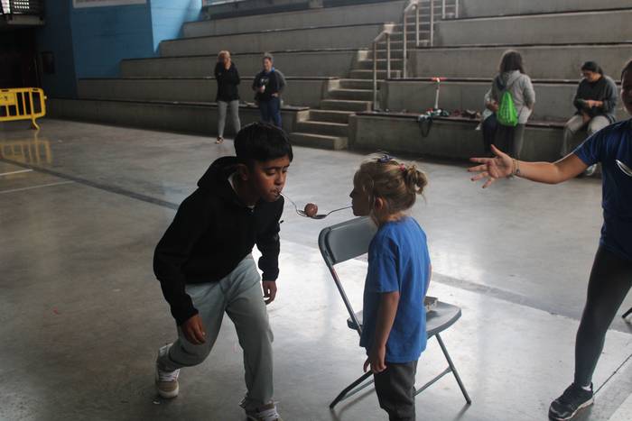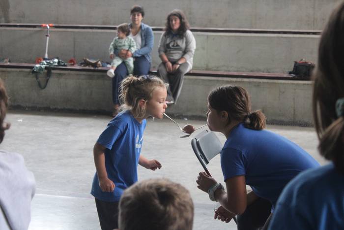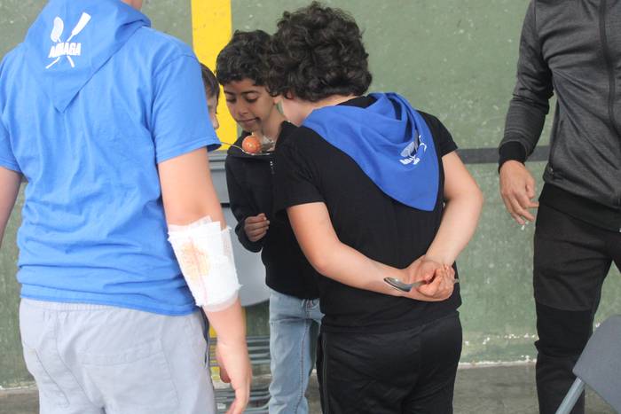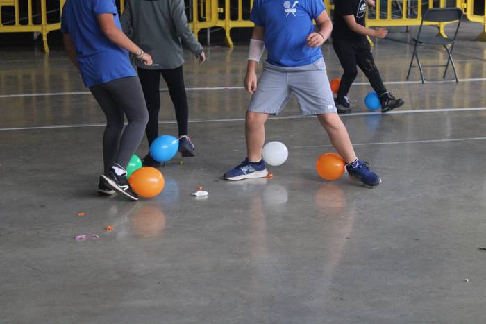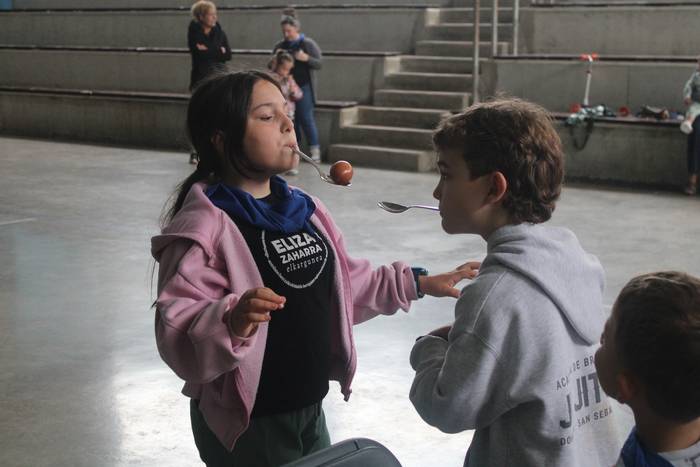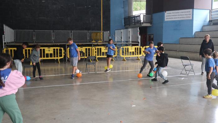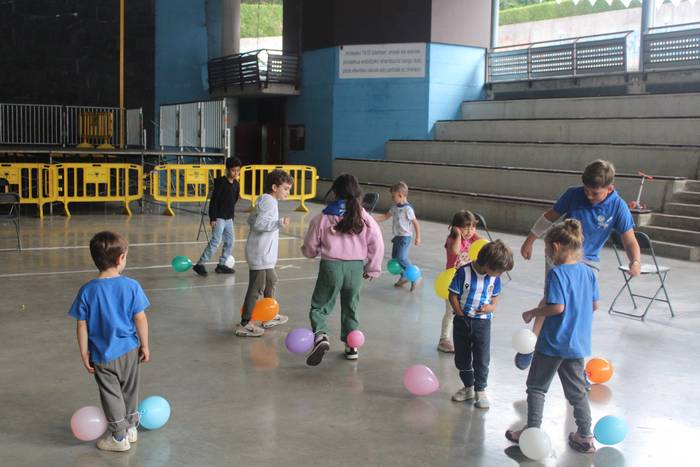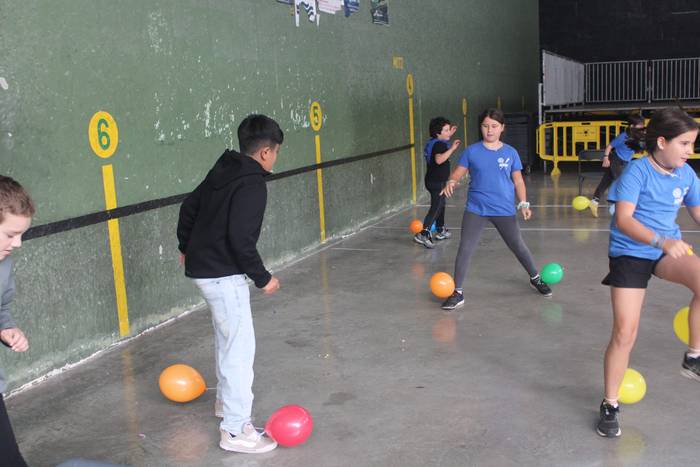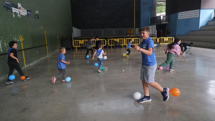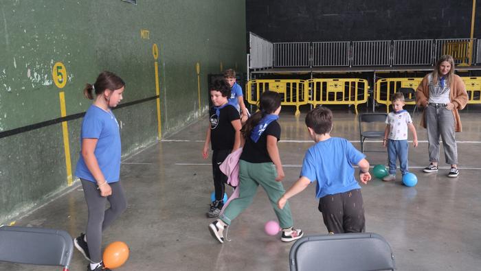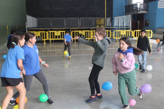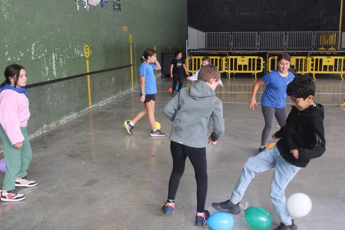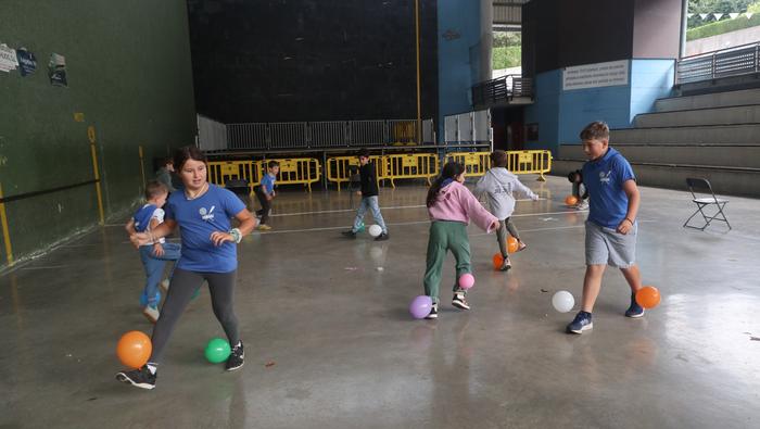 Ekintza erakargarriez betetako egunpasa osatu die jai batzordeak. Egunari jolasean eta sortzen ekin diote frontoian, ondoko irudiotan ikus dezakezuenez. Oreka, azkartasuna eta talde lana gailendu dira, elkarrekin jolastea sustatu duten proposamenetan.