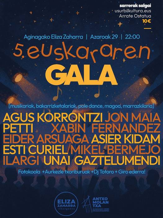 22:00 Euskararen Gala Aginagako Eliza Zaharrean.
