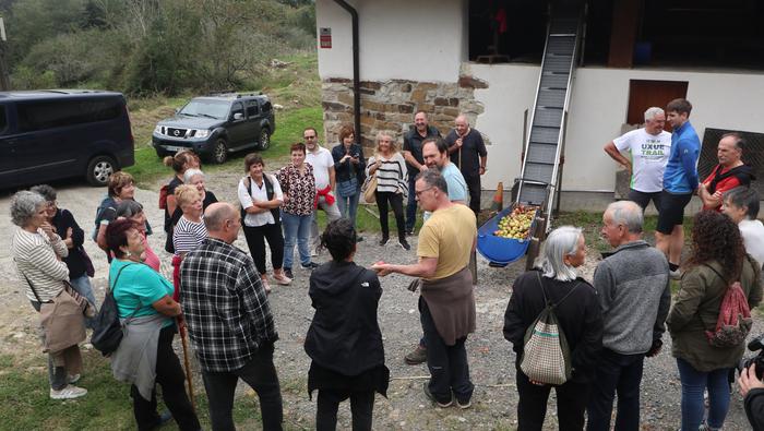 Egiluze baserria izan du helmuga ibilaldiak. Bertako etxekoek eskuzabaltasun handiz zabaldu dute haien bizilekua. Bertako dolarea ezagutzeko aukera izan da baita sagar jotzea zuzenean ikusteko aukera ere. Antolatzaileek azaldu moduan, sagar jotzerako baliaturiko sagarra biltzen aritu direnak ere bertan ziren; Sagardo Egunaren Lagunak taldeko kideak hain zuzen.