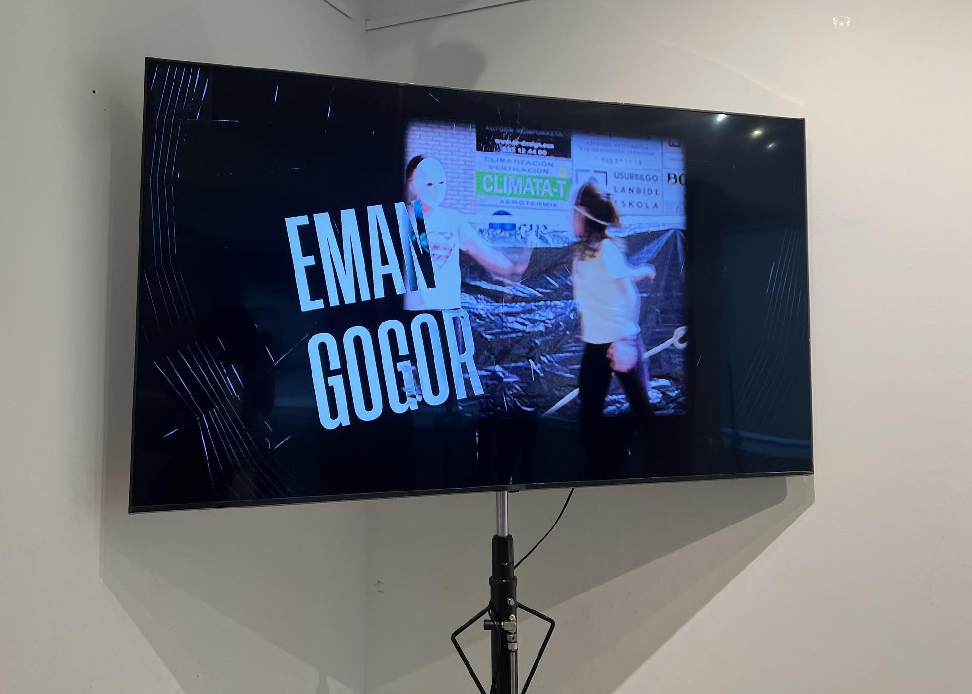Baina ez da pelikula bat; ez da bideo-joko bat; Sutegin ikusgai dagoen Norgehiagoka erakusketaren barruan ikusgai dagoen ikus-entzunezko laburra da. Soka-saltoan ari diren ume batzuei harmailetan dauden gurasoek esaten edo oihukatzen dizkieten hitzak dira: “Ez egin hutsik”, “adi egon”, “ongi egin salto”… Gero eta ozenago, gero eta haserreago: “Ez al duk ulertzen?”, “zer hago, galduta?”