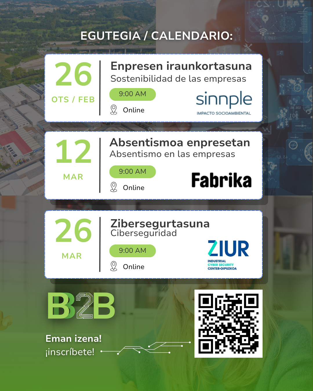 Egitasmoaren lehen saioa otsailaren 26an izango da, 9:00etatik 11:00etara, eta enpresen jasangarritasuna izango da hizpide; martxoaren 12an, berriz, pertsonen arloan enpresek pairatzen duten absentismoa landuko da. Martxoaren 26ko formakuntzan, aldiz, zibersegurtasuna izango da ardatz, eta kontzeptuetatik ekintzara urratsa nola eman aztertuko da.