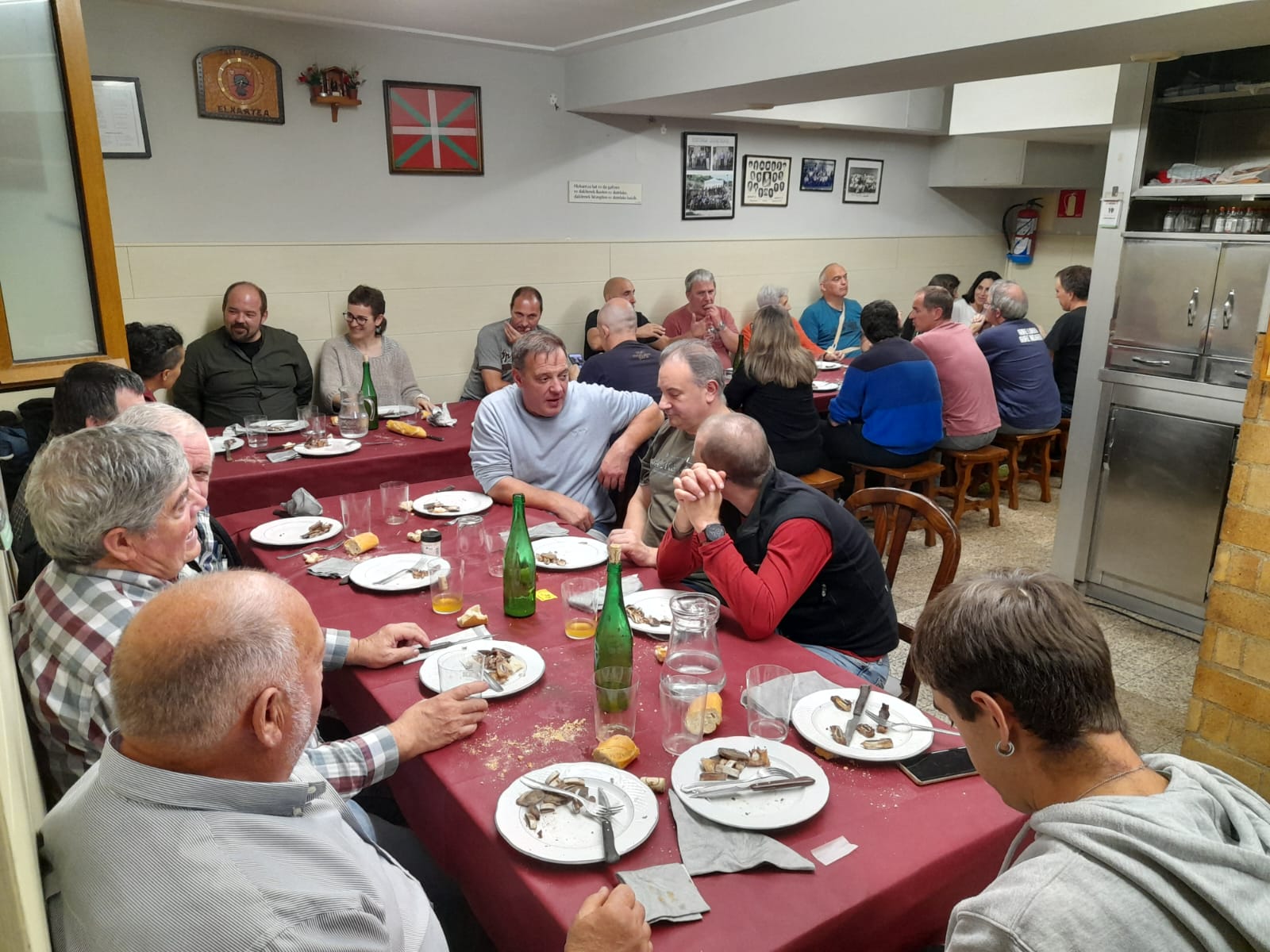 Menua: txistorra, bakailaoa saltsan, saiheskia, gazta, irasagarra eta intxaurrak, kafea, kopa.