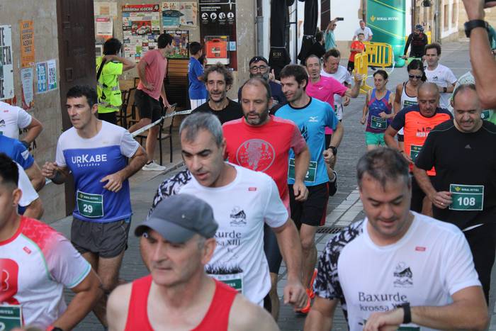 Herrikide nahiz bisitarien artean, guztiek herri bizitzara itzuli den Baxurde Krossari ongi etorri beroa eman diote. Irudiotan, lasterkariak abiatu osteko lehen metroak.