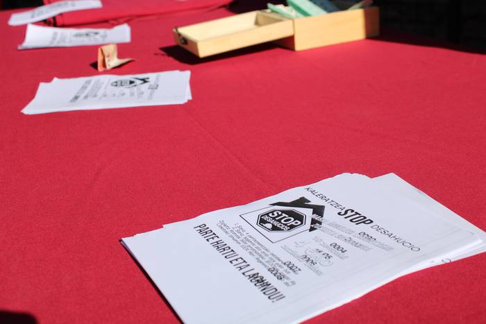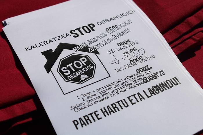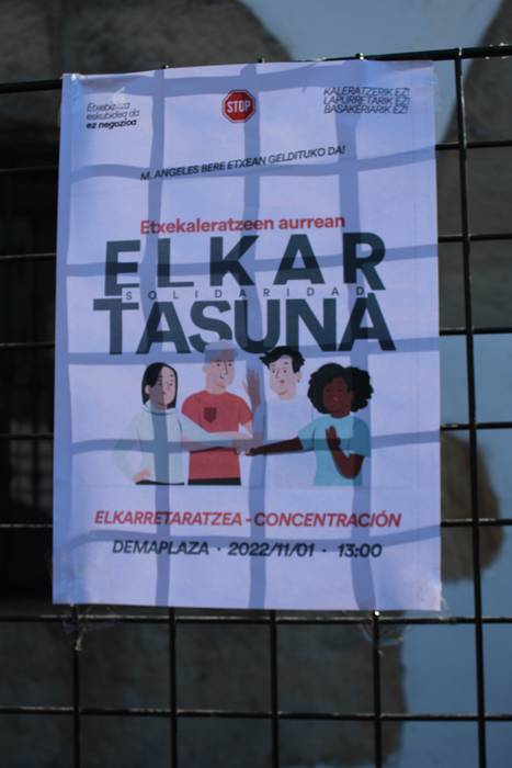 Maria Angeles bere etxean gera dadin lanean diharduen herri bilguneak deitu duen hitzorduan, funts putreak salatu eta horren aurrean herri elkartasuna aldarrikatu dute. Babesa egoera bidegabea bizitzen ari den eta mobilizazioan bertan zen Maria Angelesi. Une honetan bere egoera impasse egoeran dela azaldu dute. "Etxebizitza enkantean prozesua atzeratzen edo gelditzen saiatzen ari dira". Bide horretan, "mailegu emaileari ordaintzeke dagoen diru kopurua zehazteko eskatu diote, zorra deusezteko aukera eskatuz. Hau da, zorra ordaintzea". Horretan da egoera egun.