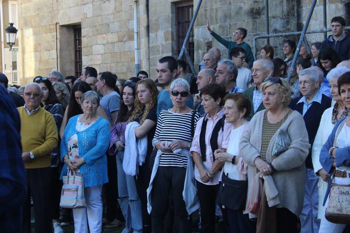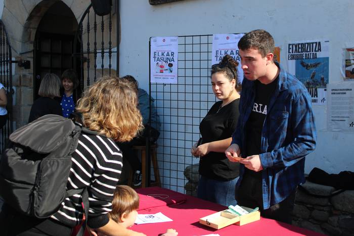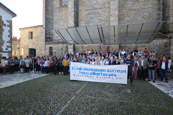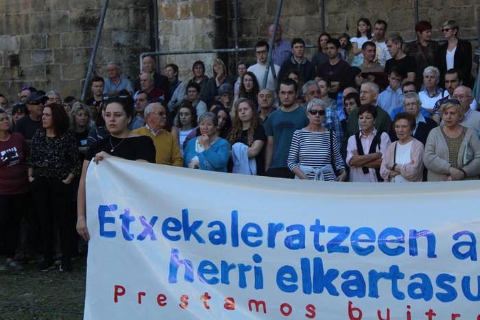Herri babeserako eta elkartasunerako txokoa izan du, azaroaren lehen egun honetan frontoitik Dema plazaraino luzatu den 26. Artisau Azokak. 13:00ak jota, aipatu plazan bildu dira belaunaldi ezberdinetako herritarrak, 80 urteko herrikide Maria Angeles Otegiri elkartasuna adierazteko. Hala zioen egin duten elkarretaratze jendetsuaren buru zen pankartaren leloak: "Etxekaleratzeen aurrean herri elkartasuna. Préstamos buitres no!".