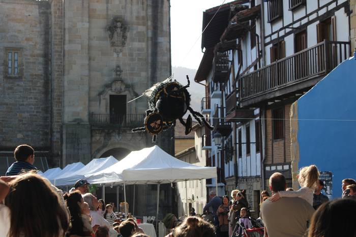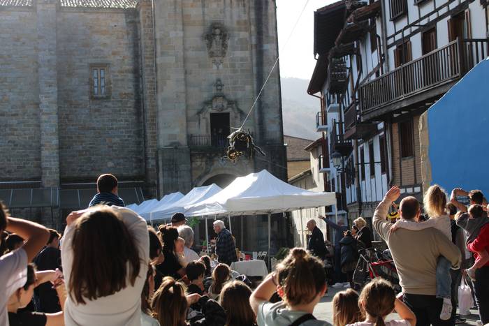 Iragan igandean, plazako ertz batean geratu behar izan zuen erlea, jaiaren erdigunera itzuli da 13:30ak aldera ospaturiko ezti lehiaketako sari banaketa ekitaldian. Ohi bezala, Salbatore elizako kanpandorretik ekarri ditu Euskal Herri mailako 23. txapelketa honen sariak, txapelak. Ikusmin itzela eragin du, bereziki, une hau bizitzeko irrikitan izaten diren gaztetxoenen artean. Gerturatu ahala, erle handia ukitzen ere saiatu dira. Txalo artean egin diote harrera, baita bere gaurko zeregina eginda kanpandorrentzat itzultzen hasi denean ere.