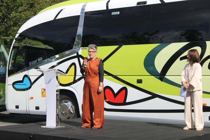 Testuinguru horretan aurkeztu zituzten autobus berrien mamiaz gain, itxura; "mugitzen zaituen bihotza" sormen lana, ekitaldian bertan izan eta bere burua "Mike Belindo" gisa aurkezten duen David López Amézqueta margolari nafarrarena. Aurrerantzean, autobus berriaren bidez, bere obra, artea askotariko txoko eta jendarte zabalera garraiatuko da.