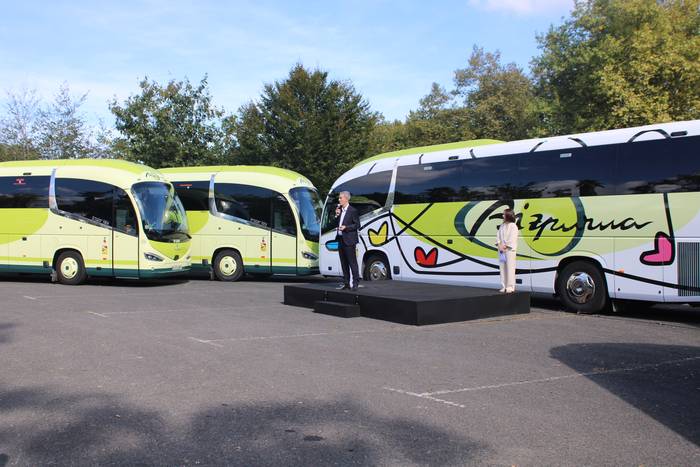 Aurreskuak ekindako musikaz giroturiko hitzorduan zehar, "berritasuna, jasangarritasuna eta teknologia" edota artea mugimenduan irudikatzen duten autobus berriak ezagutarazi zituzten; ekitaldiko aurkezleak zioen moduan, "Aizpurua Autobusen iragana, oraina eta etorkizuna irudikatzen duen obra polit bat".