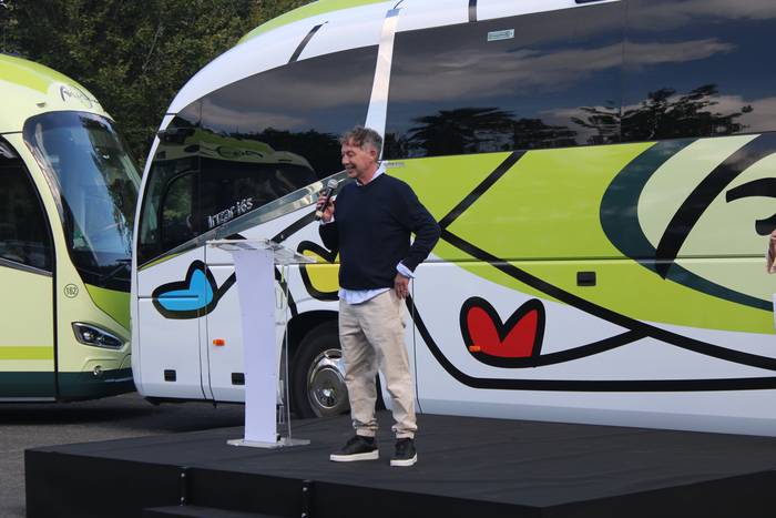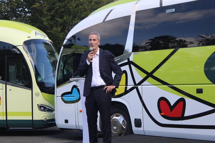 Ekitaldian zehar, kanpotik nahiz barrutik ezagutzeko aukera eskainitako autobus berrien berezitasunak nabarmendu zituen Regok. Eredu horretako 2.400etik gora ibilgailu dituztela zehaztu zuen.