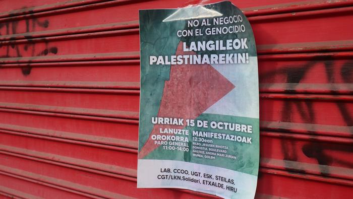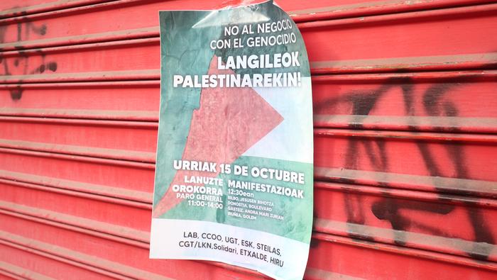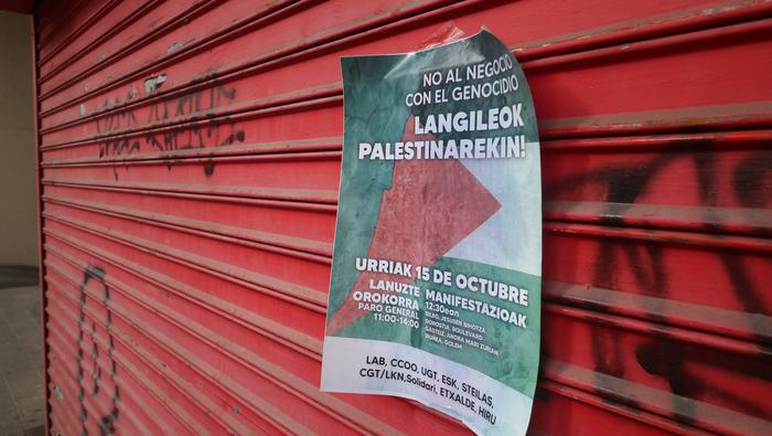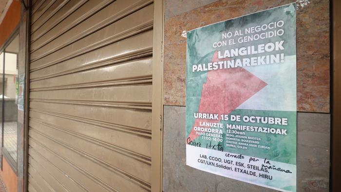 Izan ere, ezohiko asteazkena da gaurkoa, hilaren 15a. Palestinarren aurkako genozidioa behingoz eten, horren kontura negoziorik egin ez eta Palestinarekin bat egiteko lanuzte orokorra deitu dute sindikatuek. Deialdiarekin bat egin du Usurbilgo herriak ere. Nabaria izaten ari da azken orduotan lanuzte orokorraren eragina, bereziki herri merkataritzan edota udal zerbitzuetan.