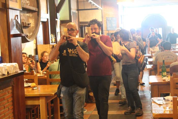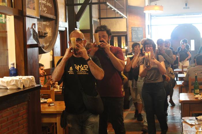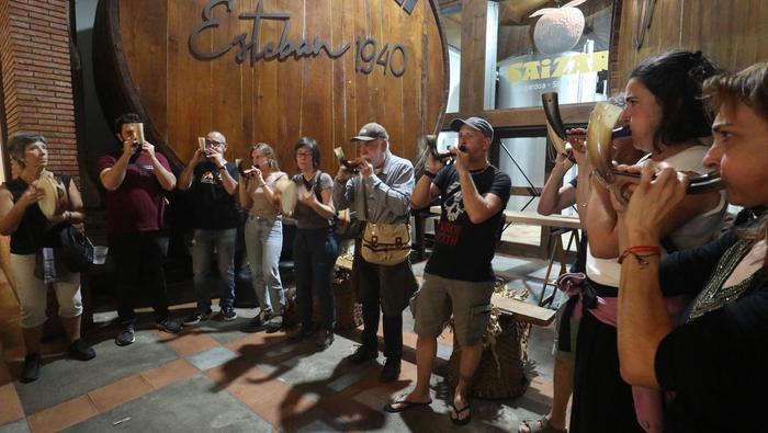 Hitzordu huraxe izan zen abiapuntua, gerora Saizar sagardotegira kalejira bidez hedatu zutena. Irudiotan duzuen musikari taldeak eraman zuen Txalaparta Festa aipatu Kalezarko sagardotegira eta han antolatua zuten 40 bat lagun bildutako bazkariari, nola ez, txalaparta doinuen artean egin zioten harrera.
