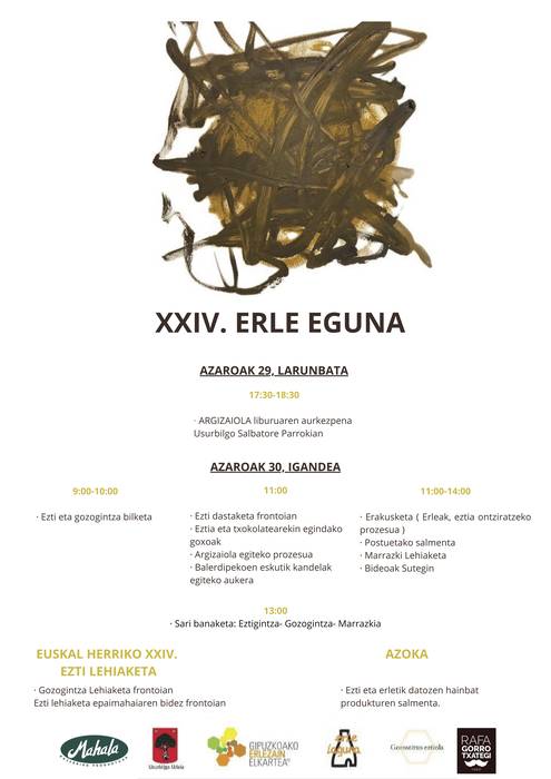 Erlearen eta haren bueltako kultura bizirik mantentzen segitzeko bueltan datorkigu 24. Erle Eguna azaroaren 30ean. Hasteko, girotzeko, liburu aurkezpena antolatu du Erle Lagunak taldeak bezperan Salbatore elizan.