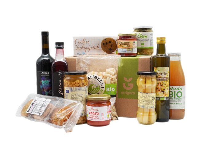 -Berdea (eko): 65 eurotan, piperrak, olioa, zainzuriak, orburuak, txitxirioak, pasta, tomatea, teilak, txokopipitak, sagar zukua, ozpina, ardo beltza erdi-ondua.