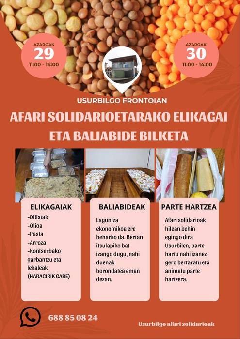 -Parte hartzea: afari solidarioak hilean behin egingo dira Usurbilen. Parte hartu nahi izanez gero bertaratu eta animatu parte hartzera.