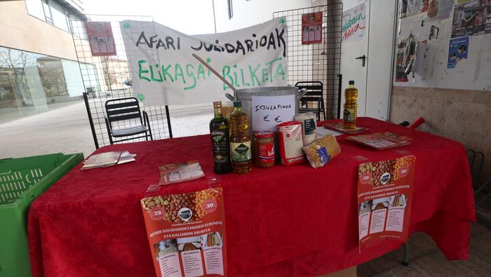 Gaurkoa zuten lehen elkartasun bilketa eguna. Sutegi atarian jarritako postu solidarioan diru ekarpenak egin, elikagai eta baliabideak helarazi edota herri ekimen honi buruzko informazioa jasotzeko aukera izan da. Aipatu moduan, igandean, hilaren 30eko 24. Erle Egunean segida izango du elkartasun ekimen horrek.