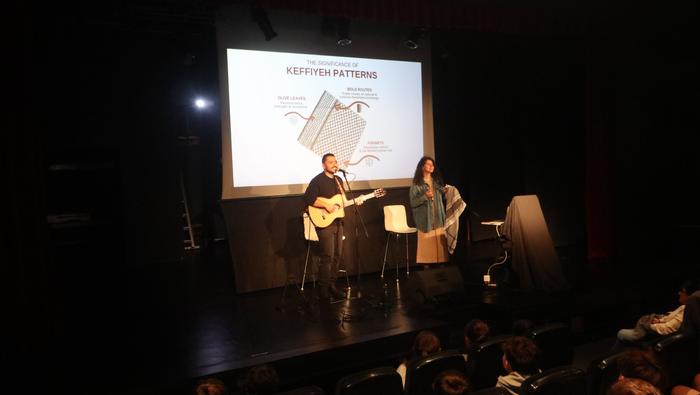 Bizi duten egoera latz eta bidegabeaz mintzatu ziren, baina baita horren jatorriaz ere edota haien herria hobekiago ezagutzeko aukera izan zuten gazteek. Azalpenak, taldekoen abestiarekin tartekatu zituzten.