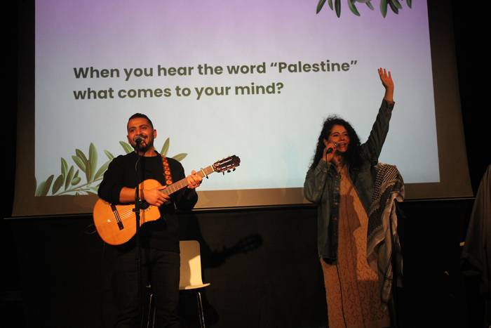 Bilgune horretako ordezkari Igor Otxoa ere Sutegin izan zen. Soul Band taldeko bi kideak aurkeztu zituen. Kide gehiago ditu taldeak, beste "musikari batzuk iritsi ziren maiatzean. Egon ziren genozidiopean Gazan zortzi hilabetez. Ateratzea lortu zuten eta bukatu dute Euskal Herrian".