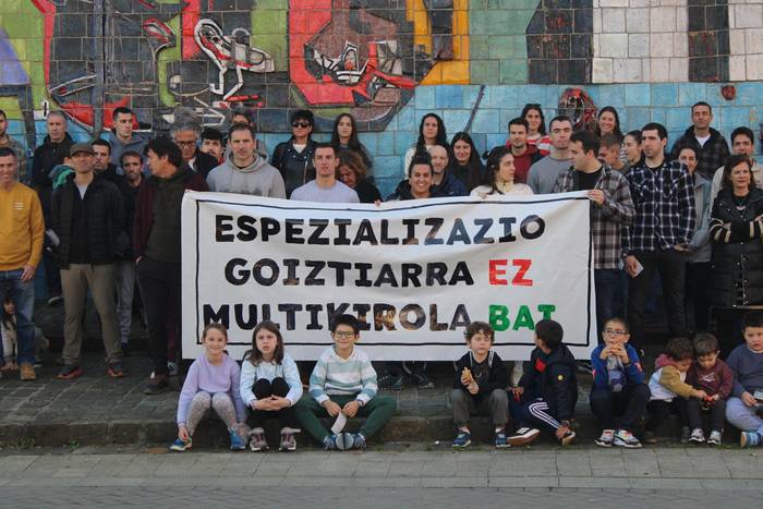 Espezializazio goiztiarrari ezezko borobila eman eta horren aurrean, adin goiztiarrean direnentzat multikirola sustatzen duen eredua babesteko mobilizazioa egin dute larunbat eguerdi honetan, abenduaren 13an, Mikel Laboa plazan. Gurasoek, haurrek, udal ordezkariek, kirol eragileetako kideek nahiz alor honetan herri mailan eta udalerritik kanpo erreferentziazkoak diren kirolari ezagunek hartu dute parte ordu-laurdeneko elkarretaratzean.