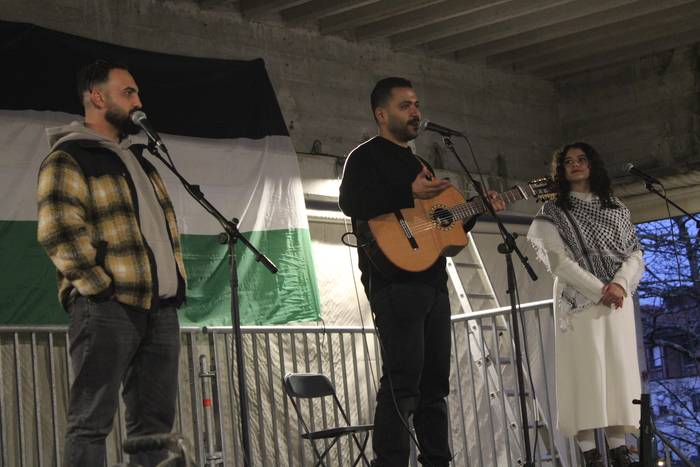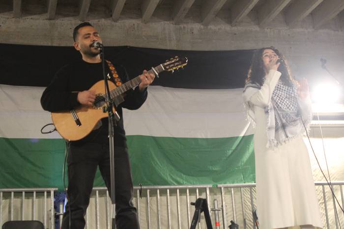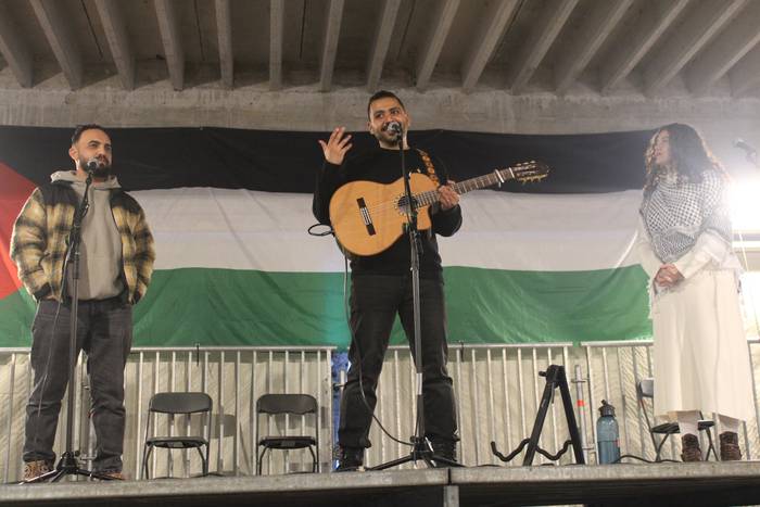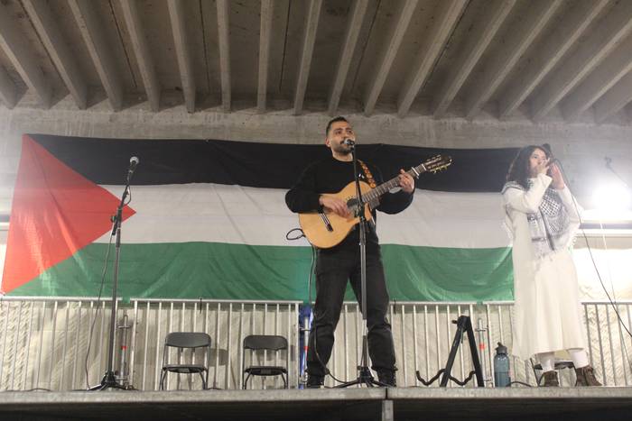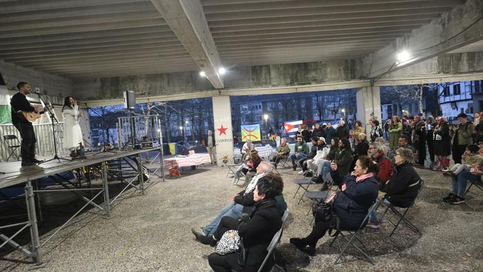 Beste ezer baino lehen, Mundualdia abiarazi duen hitzaldi musikatu horretan, eskertza helarazi nahi izan diete bertara joandakoei, itzultzaile lanetan izan duten Bilbon bizi den palestinar baten laguntzaz. "Esanguratsua da guretzat, Palestina presente izatea edozein mugimenduren ekintza edo jaialdietan. Palestina beti presente dago Euskal Herrian".