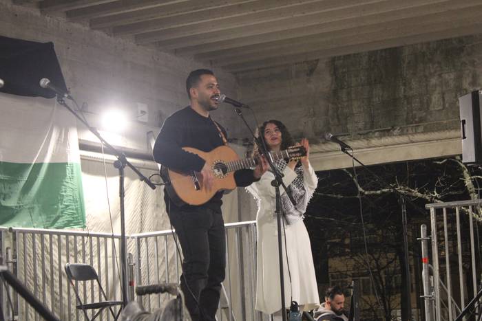 Gogotik musikatu dute saioa. Erresistentziari, existentziari, defentsarako eskubideari, laguntzari, babeslekuari, sorterritik urrundu beharrari eta urruntzeak eragindako herriminari abestu diote Gazako Sol Band taldekoek. Euskaraz kantatzen amaitu dute emanaldia, denen artean abesturiko Mikel Laboaren "Txoria txori" kantarekin hain zuzen.