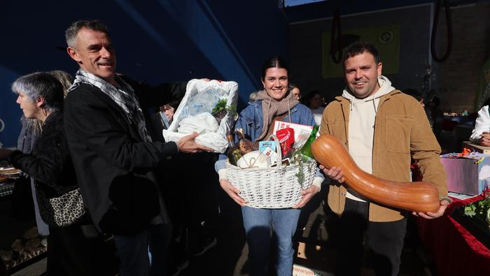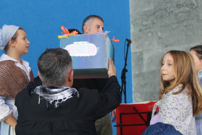 Batetik, Udarregi ikastolak eta Aginagako eskolak postu bana izan dute. Segidan duzuen argazki sortan lehenengoa, Aginagako eskolak eginiko produktu askorekin hornituriko otarraren zozketako saritua duzue; Haritz Holgado izan da aurtengoan. Udarregi ikastolako DBH 4. mailako ikasleak ikasturte amaierako bidaia finantzatzen lagunduko dieten gozogintzako produktuak saltzen aritu dira.