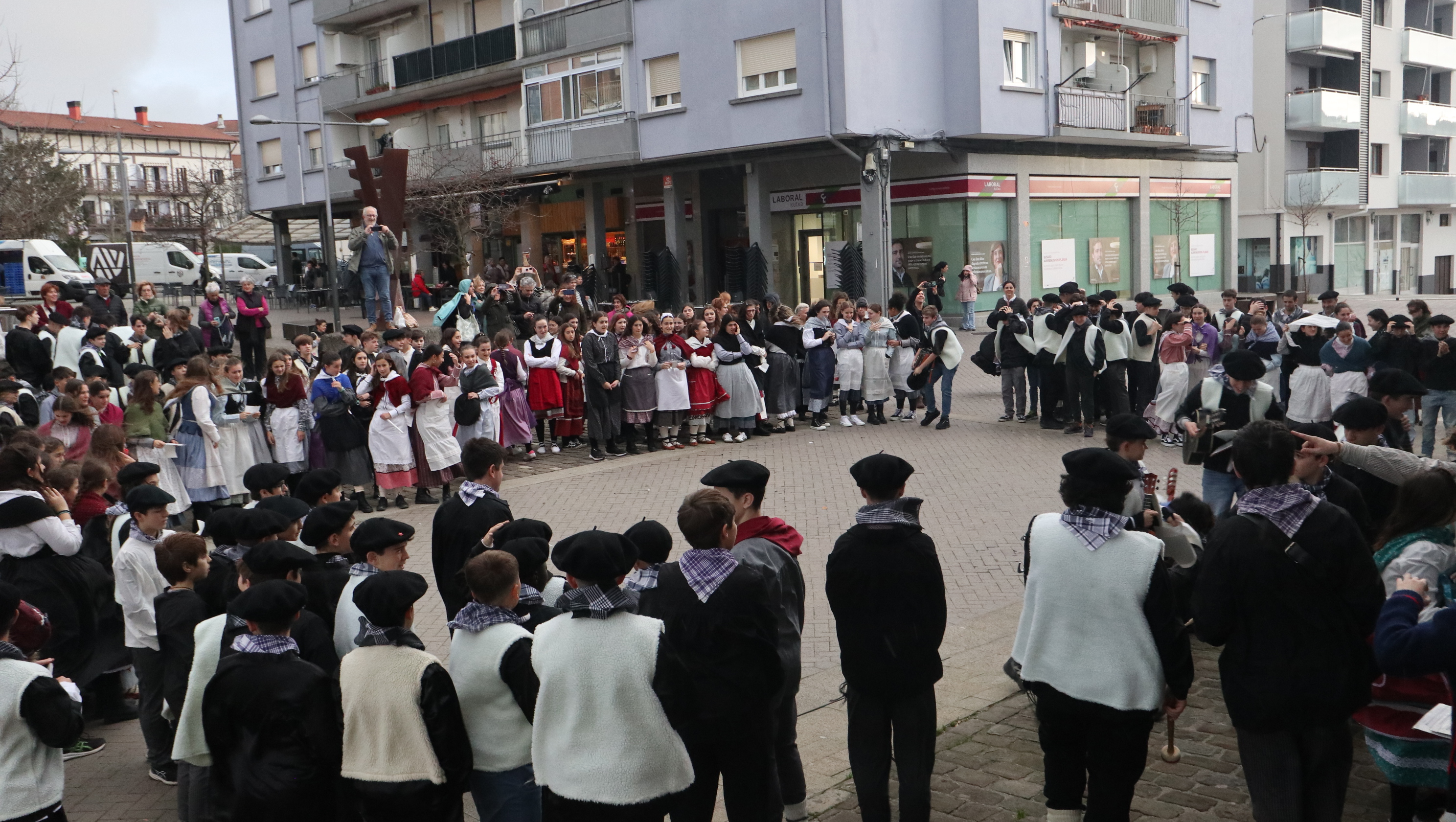 11:45ak aldera, HHkoak irtengo dira ikastolatik. Mikel Laboa plazako Olentzerori eta Mari Domingiri abestuko diote.