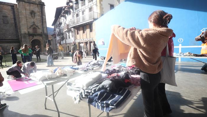 Gaurko bigarren eskuko azoka honetarako materiala aurreko bi egunotan aritu dira biltzen Sutegiko erakustaretoan. Hortxe, ekimen honen bidez sustatzen den trukea ere. Gaurkoan edonork har zezakeen mahaietan zen arropa, baina larunbat honetarako azokarako arropa utzi duenak egunotan Sutegin, bestelako jantziak eskuratzeko moduan izan da; alegia, trukea ere sustatu du berrerabilerarekin batera, aurreko urteetan egin izan den eta topaketa hauetarako berreskuraturiko AztarriTruk ekimen honek ere.