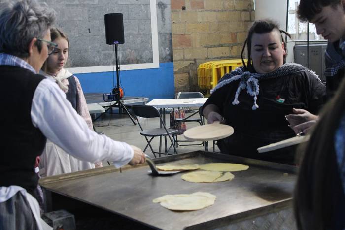 Prozesua osoa bistaratu eta landu dute ekitaldian zehar. Trebetasun nabarmena agertu dute talogintzan eta aurrez eskuz landutakoa dastatzen amaitu dute. Tailerra euskal abesti ezagunak ardatz hartuta eginiko bingo musikatuak girotu du.