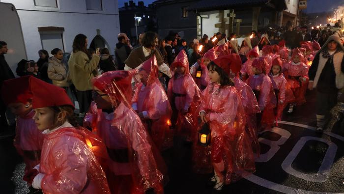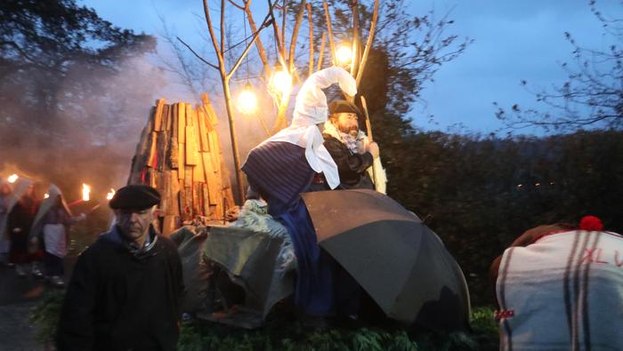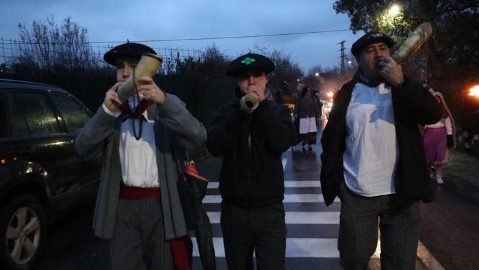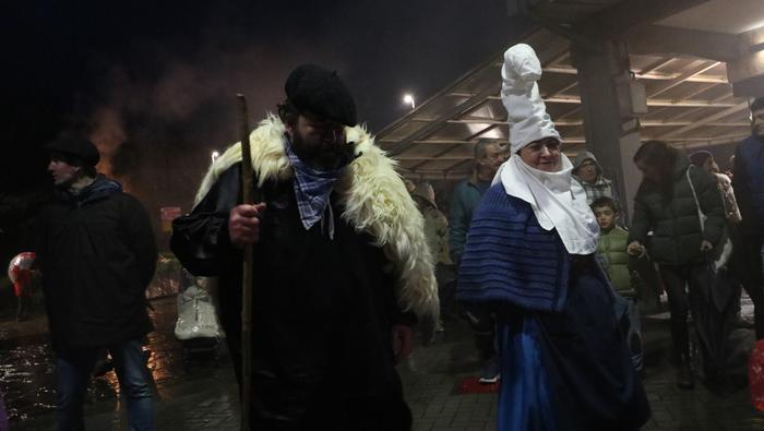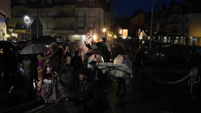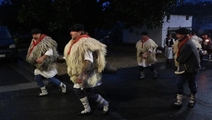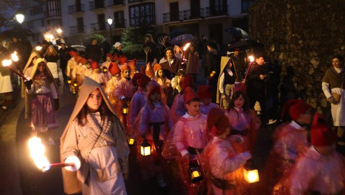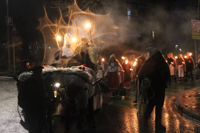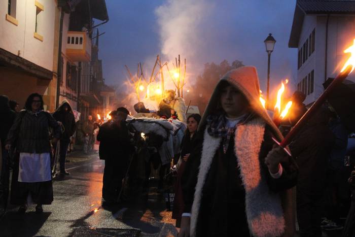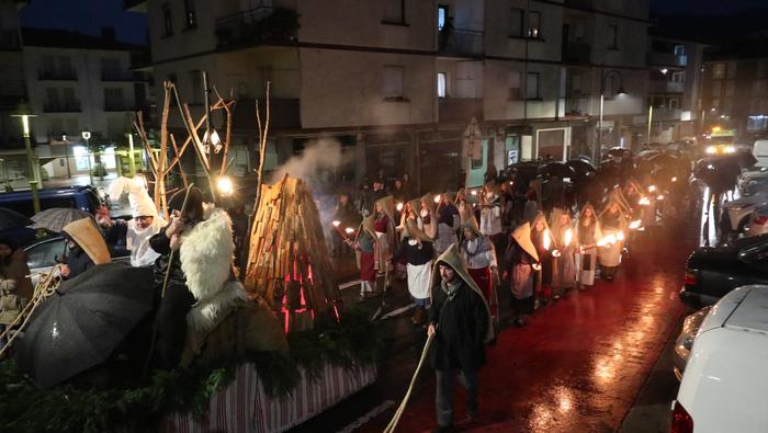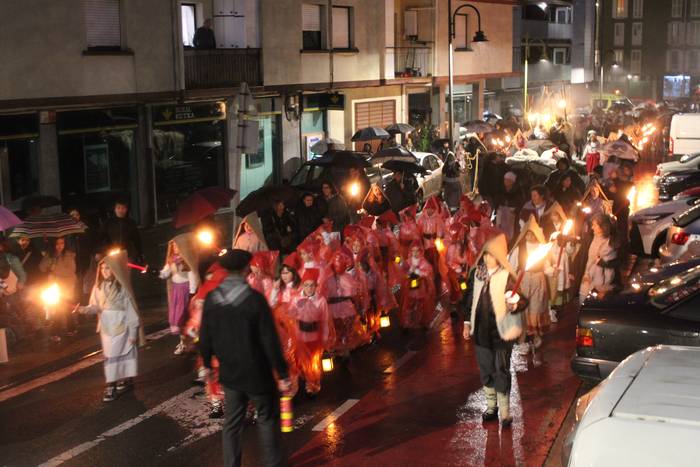 Zalantza zen eguraldia tarteko, nondik agertuko ziren, baina aurtengoan ez dute hutsik egin nahi izan. Kalezar aldean, Haranetik behera ikusi ditugu estreinakoz, orduotako protagonista maitatuenak; Mari Domingi eta Olentzero. Ez zetozen bakarrik ez, lagunarte ederrean baizik. Usurbilgo joaldunak eta adar joleak buru zituen kalejirak eta segidan, lastargiak eskuartean, bidea argitzen lagun-talde handia.