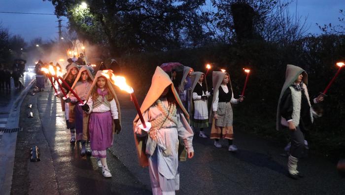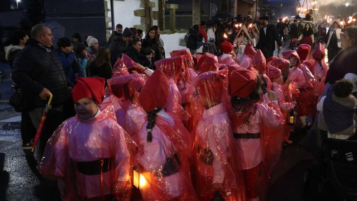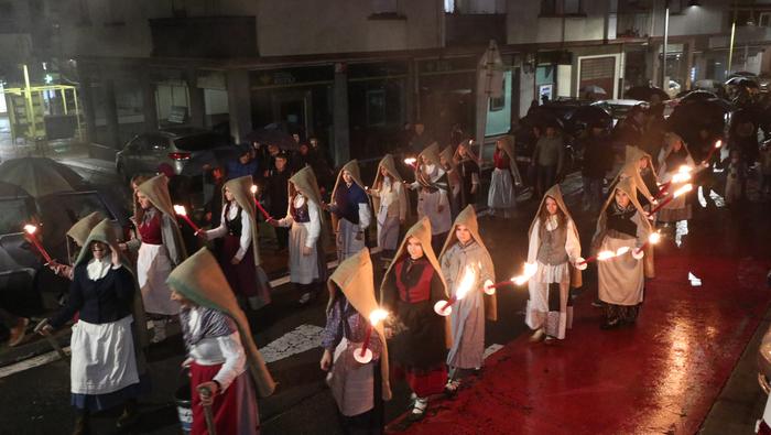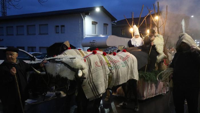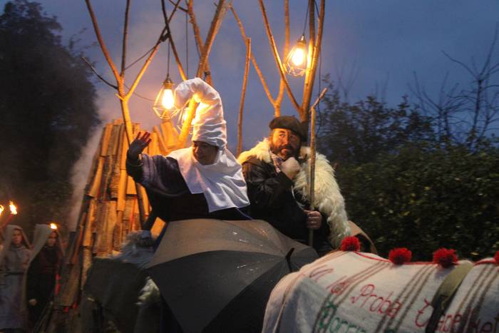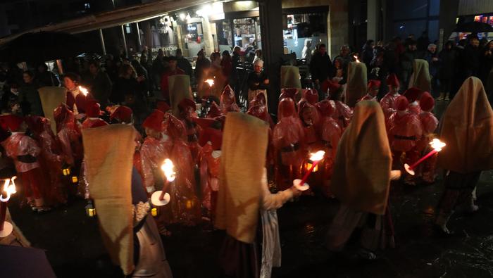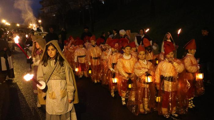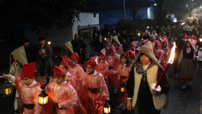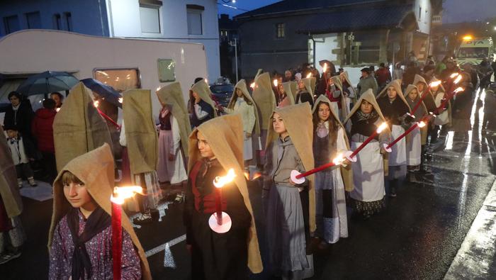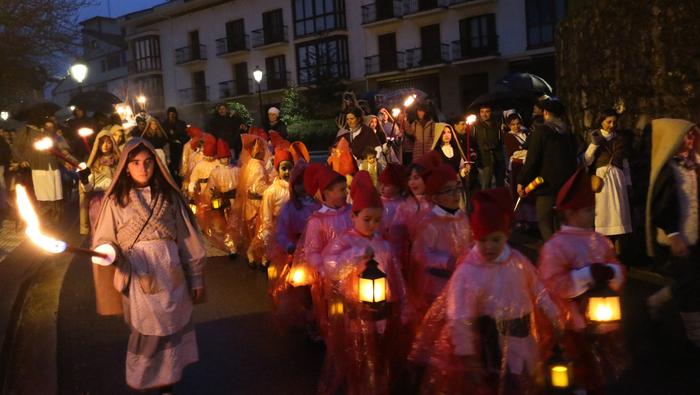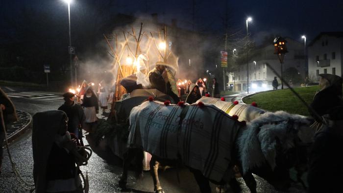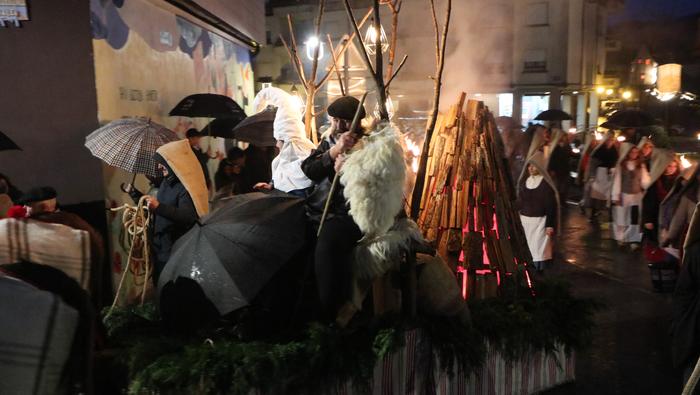 Zalantza zen eguraldia tarteko, nondik agertuko ziren, baina aurtengoan ez dute hutsik egin nahi izan. Kalezar aldean, Haranetik behera ikusi ditugu estreinakoz, orduotako protagonista maitatuenak; Mari Domingi eta Olentzero. Ez zetozen bakarrik ez, lagunarte ederrean baizik. Usurbilgo joaldunak eta adar joleak buru zituen kalejirak eta segidan, lastargiak eskuartean, bidea argitzen lagun-talde handia.
