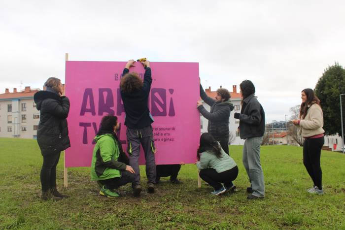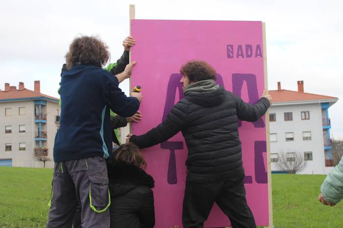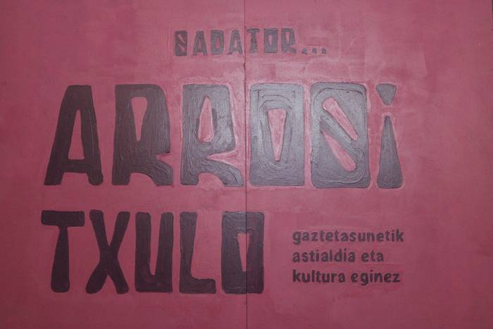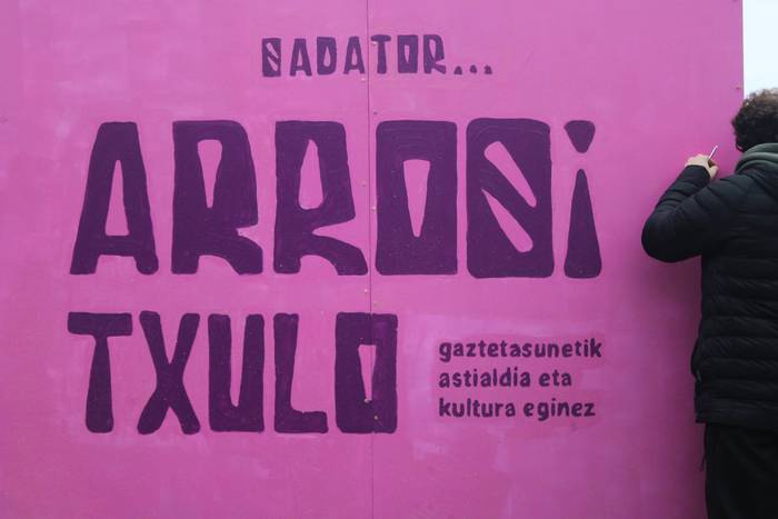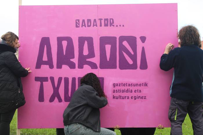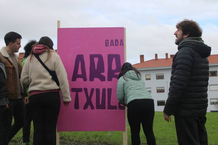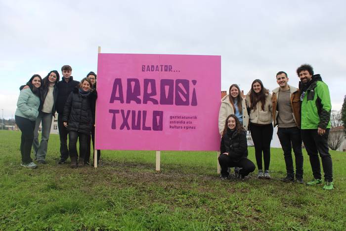 "Badator.. Arrobitxulo. Gaztetasunetik, astialdia eta kultura eginez", aldarridun kartel deigarria errotu dute ostiral eguerdi honetan, abenduaren 26an, Udarregi ikastola pareko zelaian. Apropos erabaki dute, noski, kartel hau errotzeko lekua. Izan ere, elkargunearen egitasmoa, eraikina, egoitza, kokatuko den eremua hautatu dute, datorrenaz ohartarazten duen kartela jartzeko.