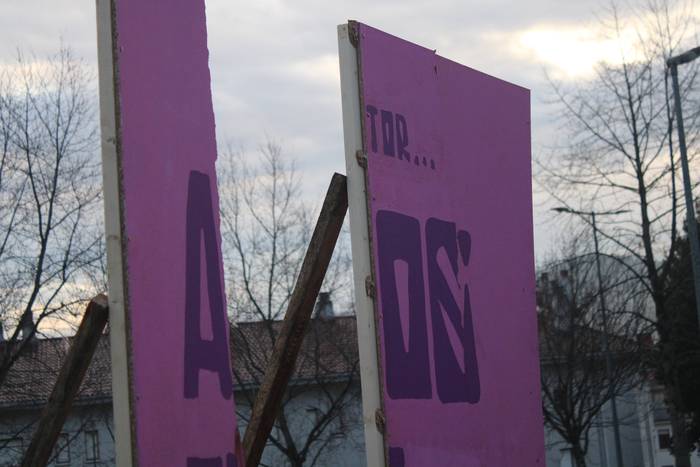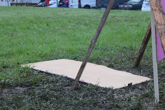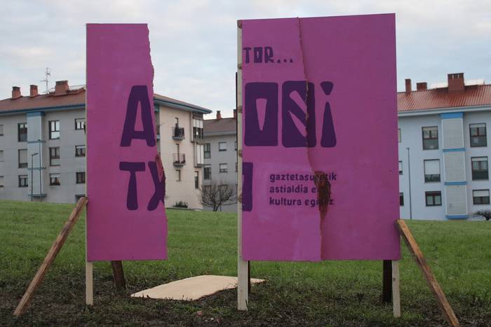 24 ordu ere ez ditu egin osorik. Irudiotan duzue, Arrobitxulo elkarguneak ostiral eguerdian esekitako murala nola dagoen larunbat goiz honetan. Aipatu moduan, egun bakar bat ere ez du egin osorik eta zutik. Bart txikitu egin dute. Irudiotan duzuen moduan utzi dute.