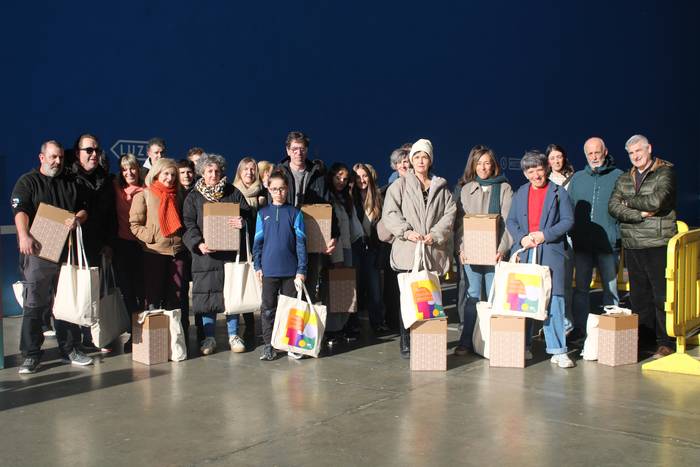 Larunbat eguerdi honetan, abenduaren 27an banatu dituzte 650 Usurbil Bizi otarrak frontoian eginiko ekitaldian; ehun saski guztira, herri honetako kultur sortzaile eta ekoizleek agerturiko eskuzabaltasunagatik.