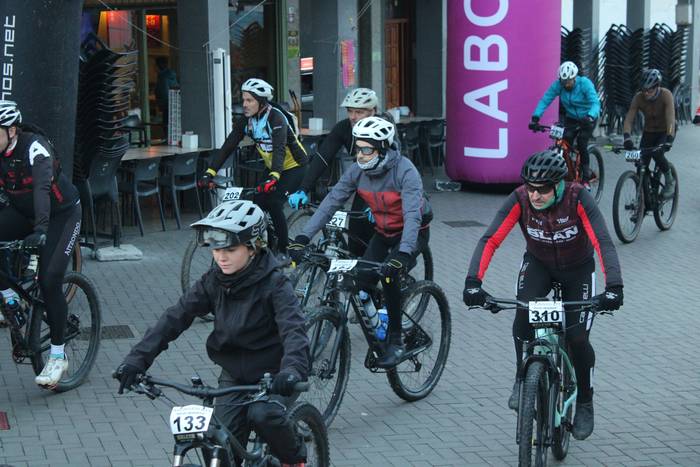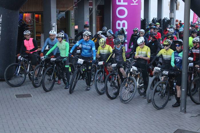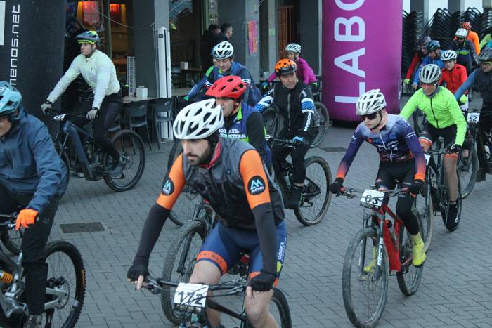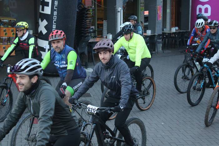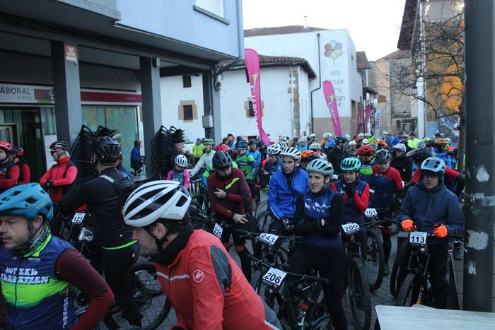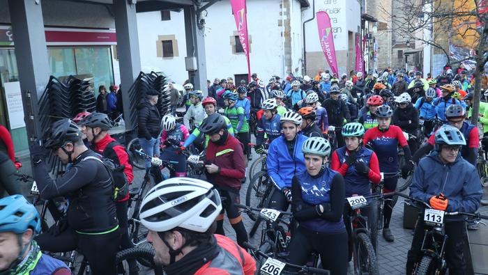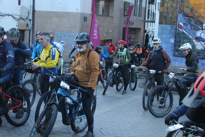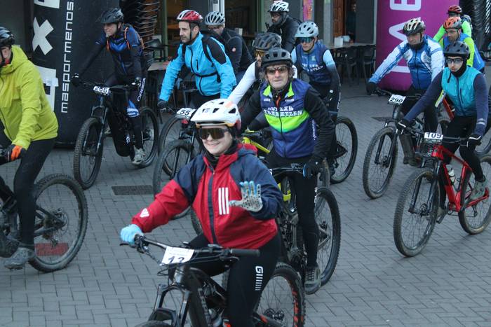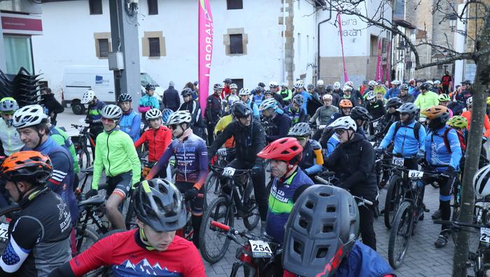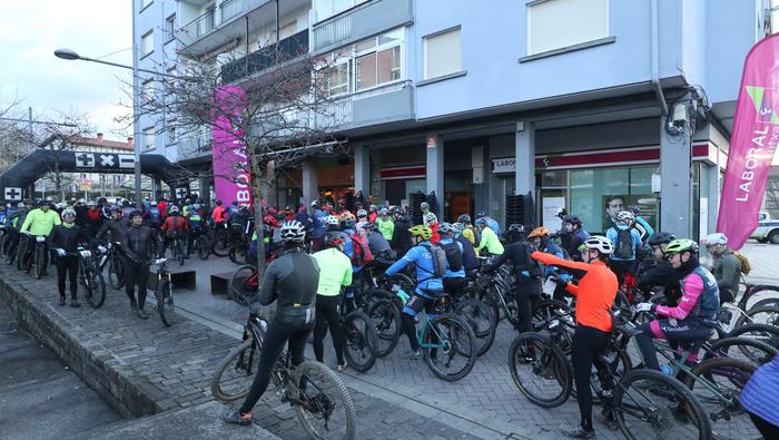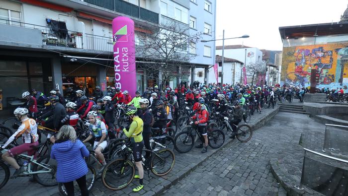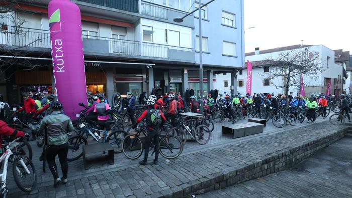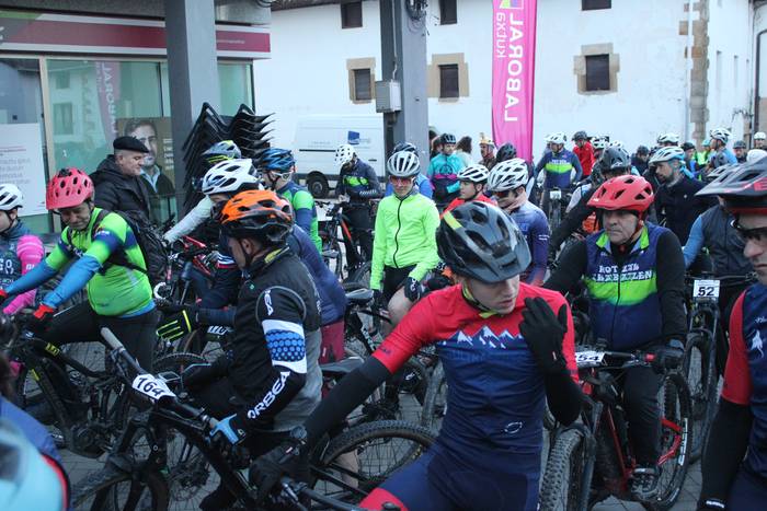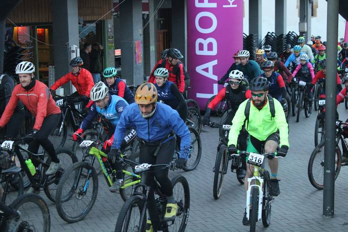 Antolatzaileek eskatu bezala, goizeko 8:45ean bildu dira Mikel Laboa plazan, 14. Irisasi BTT Hotzak Akabatzen probako parte hartzaileak Mikel Laboa plazan. Ordukoak dituzue albiste honi atxikitako irudiak.