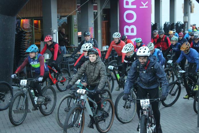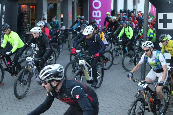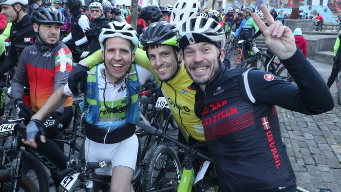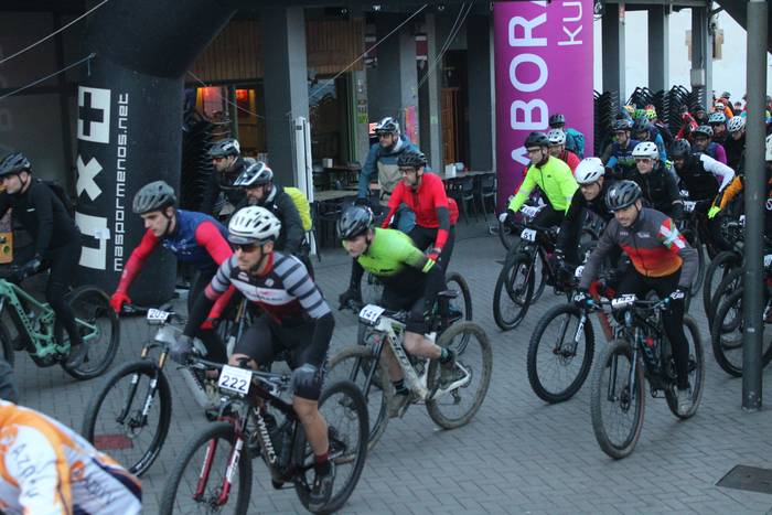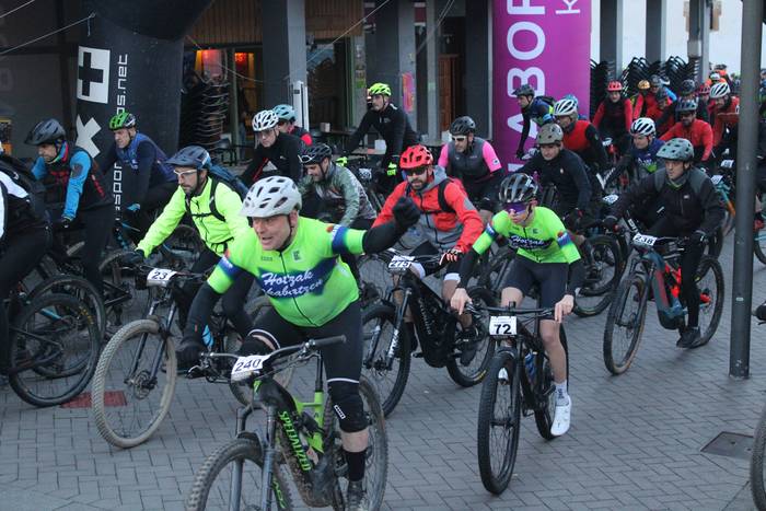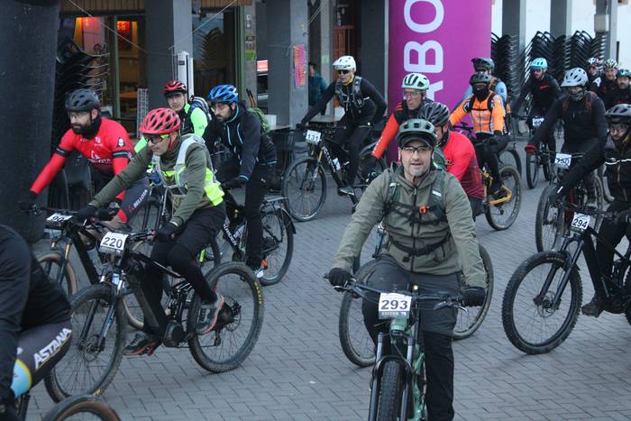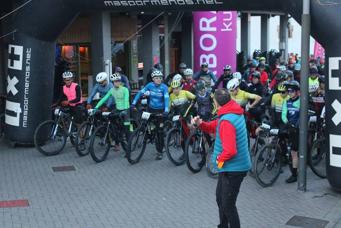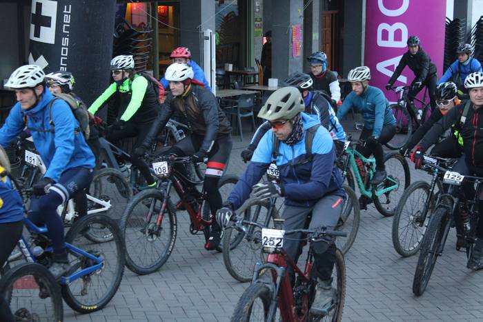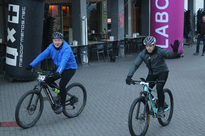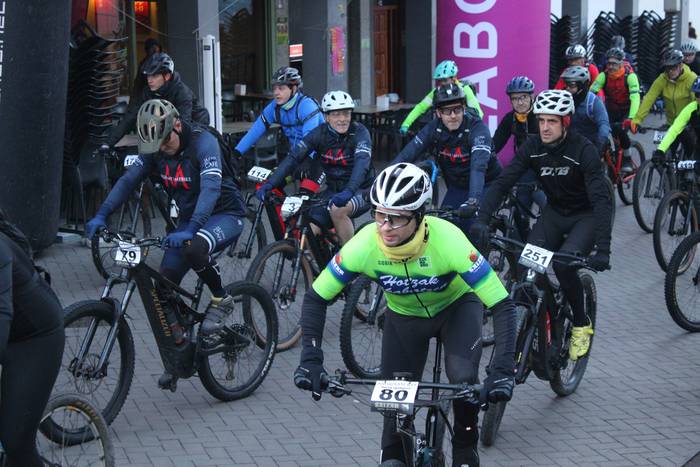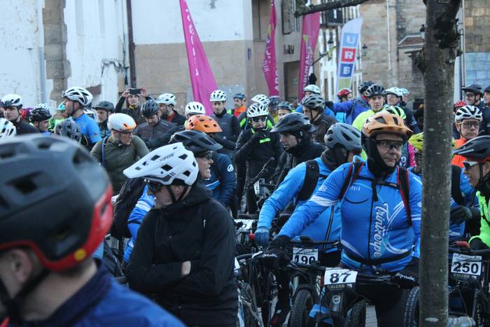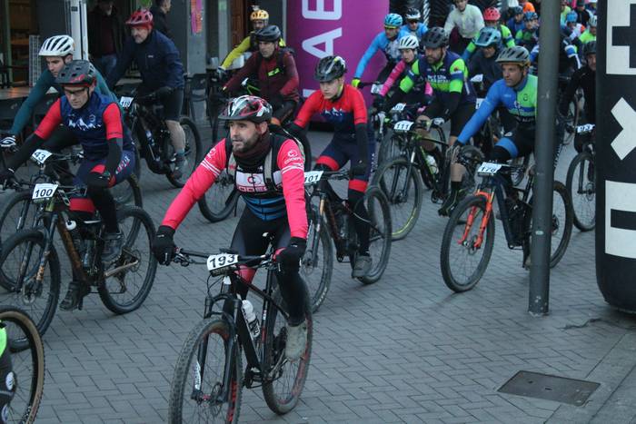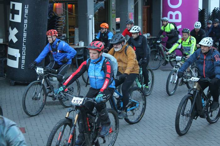 Antolatzaileek eskatu bezala, goizeko 8:45ean bildu dira Mikel Laboa plazan, 14. Irisasi BTT Hotzak Akabatzen probako parte hartzaileak Mikel Laboa plazan. Ordukoak dituzue albiste honi atxikitako irudiak.