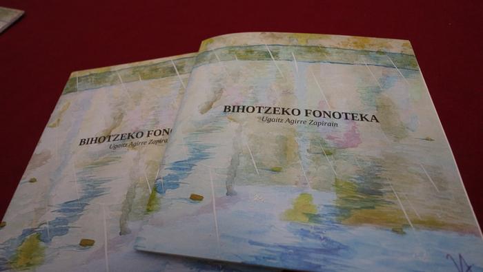 Egindako lanketa, gainera, ez da hor geratu. Izan ere, ez da esku hutsik etorri, gainera. Egindako lanketa sakonaren adierazle, kultur-etxeko auditorio atarian salgai jarritako liburuxkak. Gaurkoan, entzungai izan ditugun hitzak papereko bilduman idatziak bildu ditu Usurbilgo sortzaileak. Sorkuntza lan hori eskuratu nahi duenak, adi badaezpada, Agirreren sare sozialei.