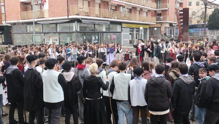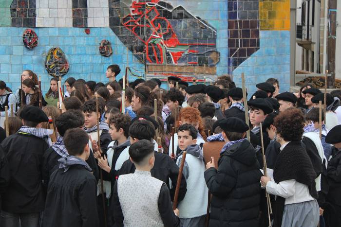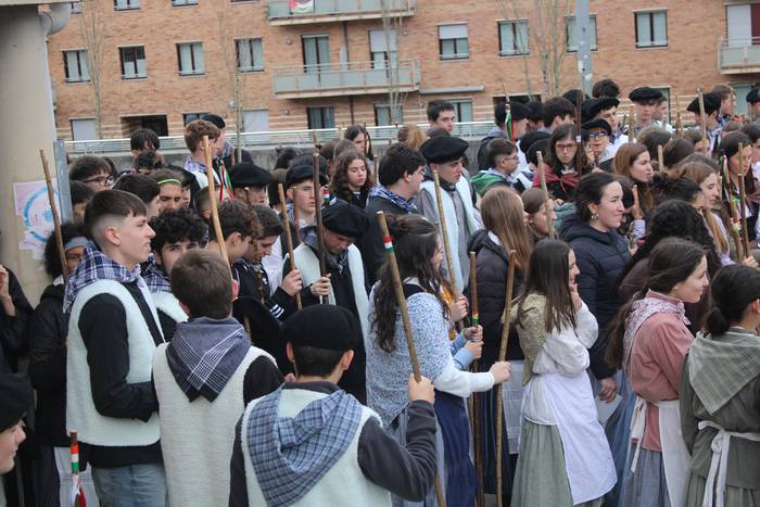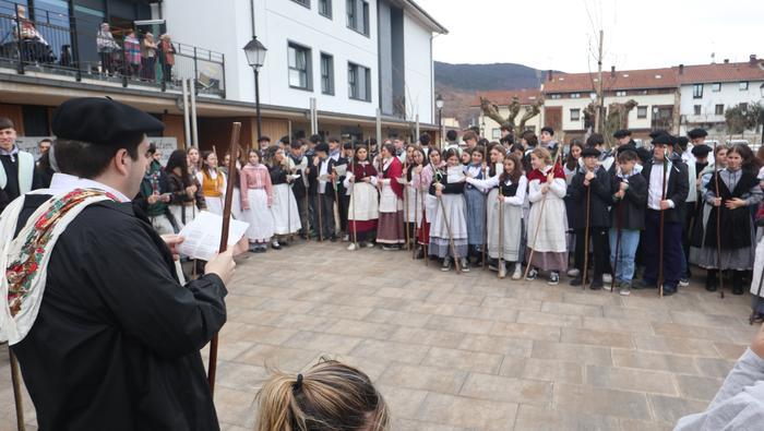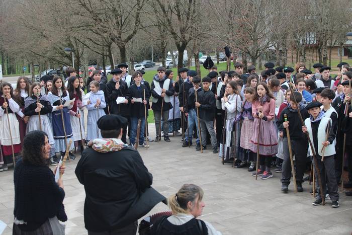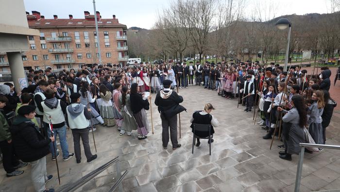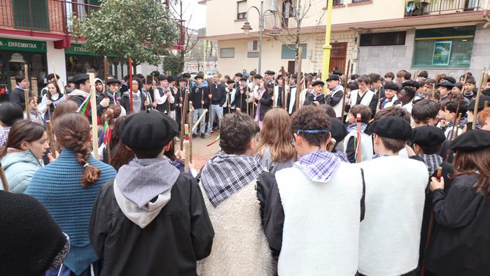 Agate Deunaren Bezpera hau ospatzen lehenak eta otsailaren 4an entzungai izaten ditugun makila hotsez eta kolplez herria girotzen goiztiarrenak izan dira irudiotako Udarregi ikastolako DBH-ko ikasleak eta irakasleak. Eguerdi partean irten dira ikastolatik herrira.