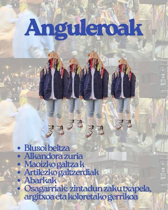 -Izaera: "Errio inguruko pertsonaiak dira, Txokoalde eta Agiñatik etortzen dira. Farolatxoak dituzte eta neguko ilunean argia egiten dute. Anguleroek laguntzen diete herritarrei haien bidea argitzen, dituzten arazoei aurre egiteko".
