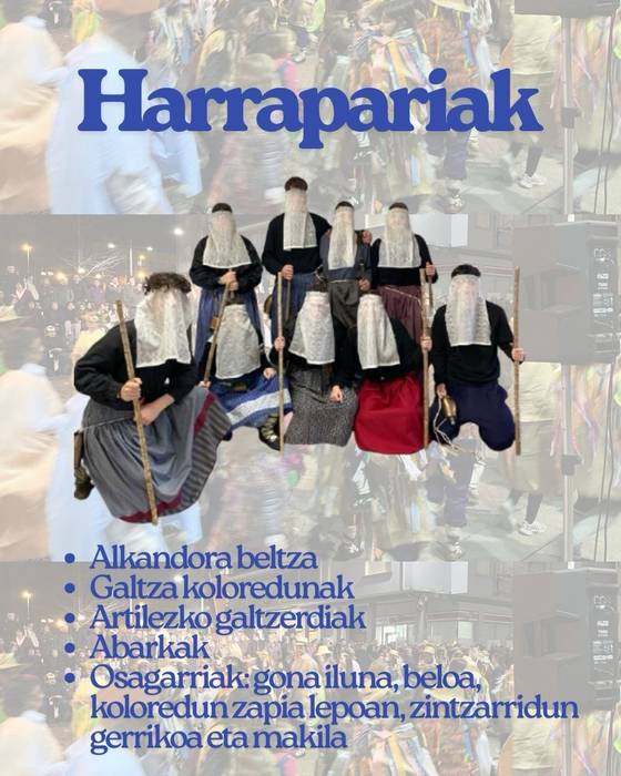 10:30 HHko ikasleek Mikel Laboa Plazan, "zaku mozorroak jantzita, urteroko dantzak egingo dituzte: Makilakixki, Orpo Punta, Mielotxin eta Ziripot eta Axuri Beltza.