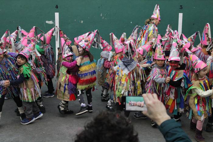 Negu giroak baldintzatuko ditu hein handi batean egunotako inauterietako ospakizunak. Baina hemen dira eta festa giroa gailentzen hasia da. Albiste honi atxikitako irudiok dituzue horren adierazle. Udarregi ikastolako Haur Hezkuntzako gaztetxoak dituzue, zaku koloretsuekin atera dira urtero moduan ostiral goiz honetan, dantzara; oraingo honetan, ordea, ikastola atariko frontoira, Agerialdeko gune estalira hain zuzen.