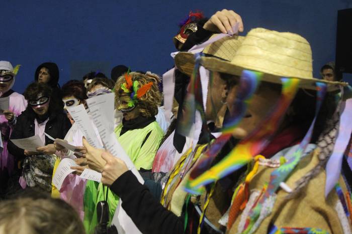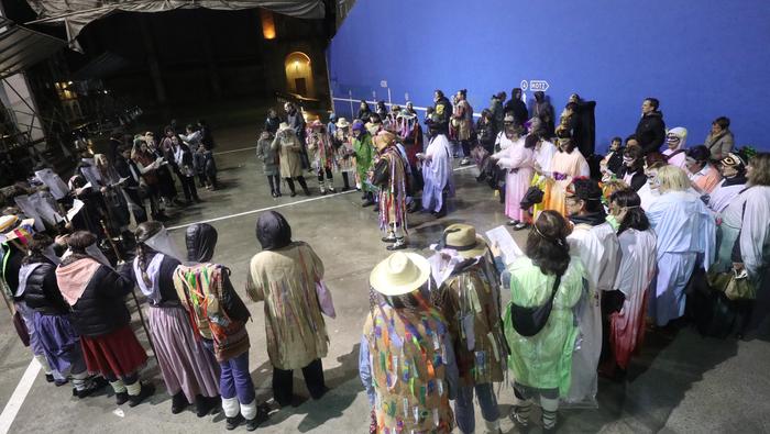 Negu giro gogorrari festarako gogoz erantzun diete pilotalekuan bildutakoek; irudiotan ikus dezakezuen moduan, kantuan eta dantzan. Eta bai, ezustean agertu da azken orduan, herri inauterion izpiritua; Urde, Sutegiko leihoetako batetik agurtu ditu herritarrak.