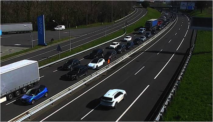 Gertakariak hainbat kilometrotako auto-ilara eragin du, Trafiko Zuzendaritzak Aritzeta inguruan duen segurtasun kamerak jasotako irudian ikus daitekeen moduan.