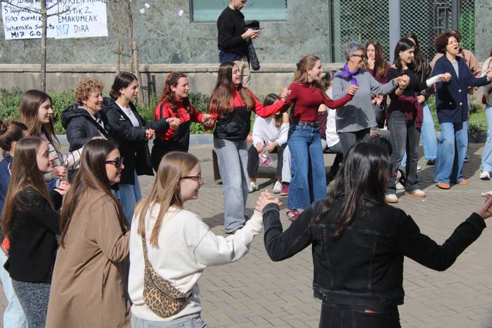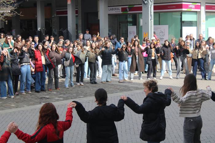 Amaiera girotua izan du, igande honetako, martxoaren 8ko manifestazioak. Usurbilgo mugimendu feministak prestaturiko adierazpena plazaratu ostean, kantuan eta dantzan borobildu dute hitzordua.