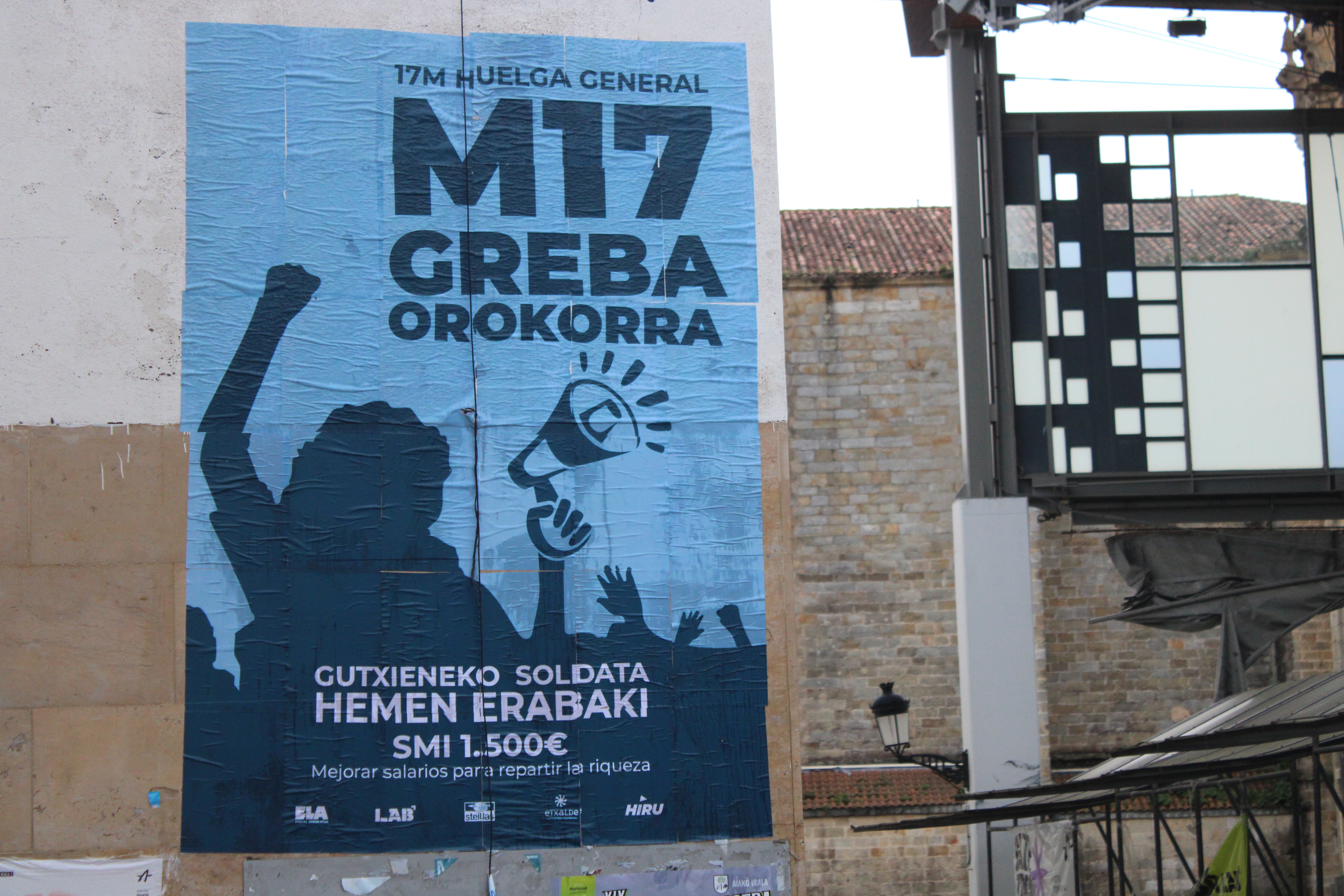 ELA, LAB, Steilas, Etxalde eta Hiru sindikatuek greba orokorra deitua dute Hego Euskal Herrian martxoaren 17an, gutxieneko soldata hemen erabaki. Lanbidearteko Gutxieneko Soldata 1.500 euro. Soldatak hobetu aberastasuna banatzeko" aldarripean.