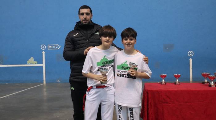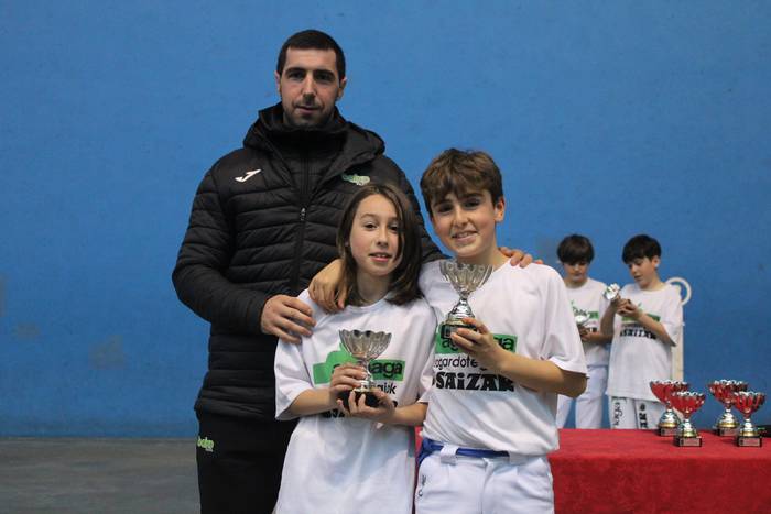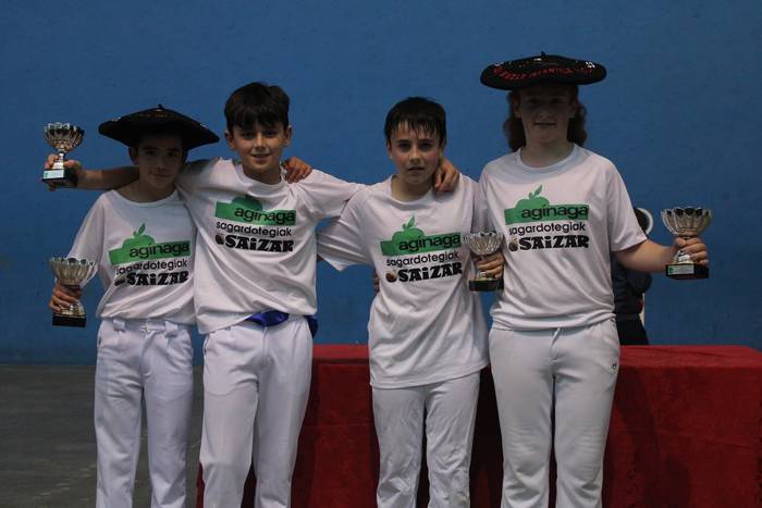 Partida amaierakoak dituzue albiste honi atxikitako irudiok, sari banaketa unekoak hain zuzen. Hasteko, alebinen hirugarren mailako ekialdeko eskuz binakako finala jokatu zuten; batetik, Iturraldek eta Urangak eta, bestetik, Roteta-Iturralde-Zurutuza jokalariek osaturiko taldeak; bestela esanda, Pagazpe 1 eta Pagazpe 2 taldeek. Iturralde eta Uranga nagusitu ziren partida amaieran.