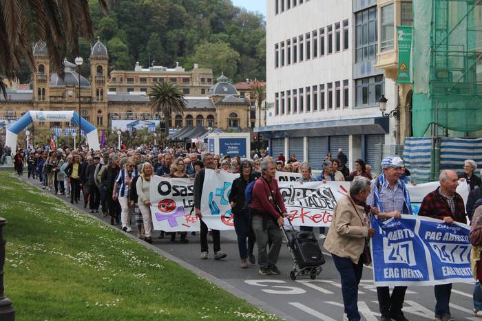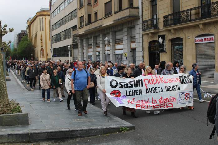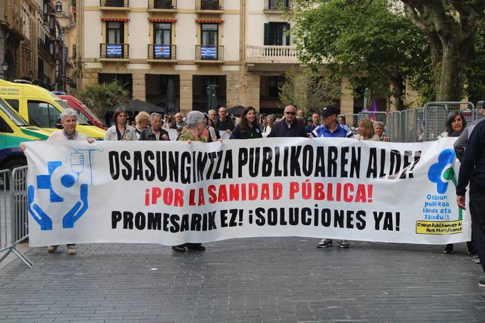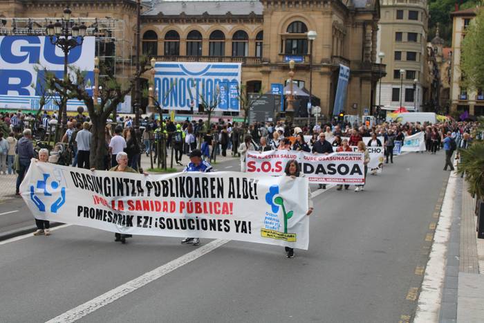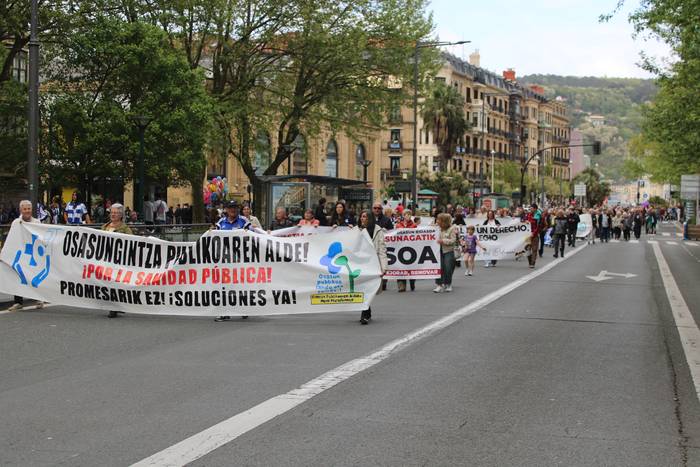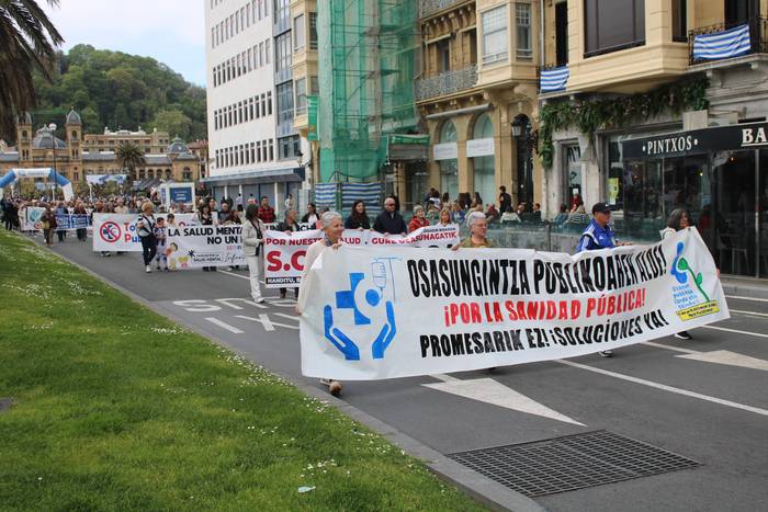 Horrez gain, 60 eragile sozial, sindikal eta politikoek bat egin dute Osakidetzaren lurraldeko hiru hiriburuetan eginiko manifestazioekin. Eragileotako nahiz haiekin bat eginiko herritarren ahotan, lelo bera; ez dute promesa gehiagorik nahi, Osakidetza duina, publikoa, unibertsala, doakoa eta euskalduna exijitu dute. Horretarako, hitzak ez, ekintzekin gauzaturiko irtenbideak nahi dituzte. Izan ere, osasungintza publikoak arrisku egoeran segitzen duela ohartarazi dute, horregatik irten direla beste behin manifestatzera.