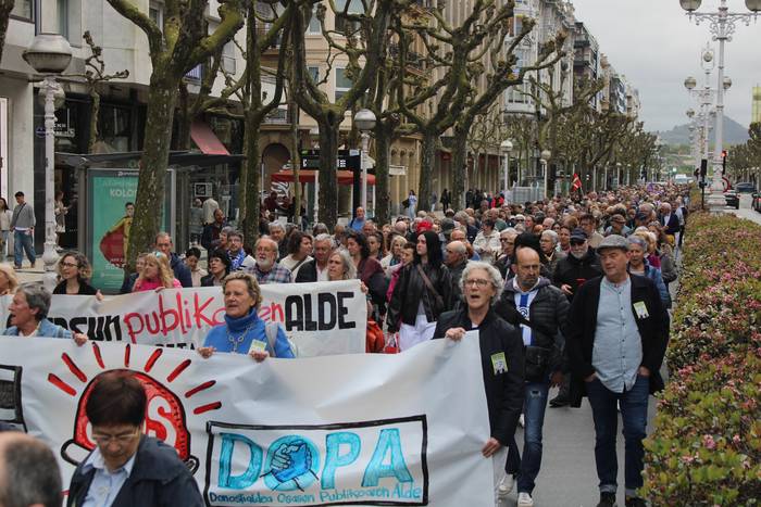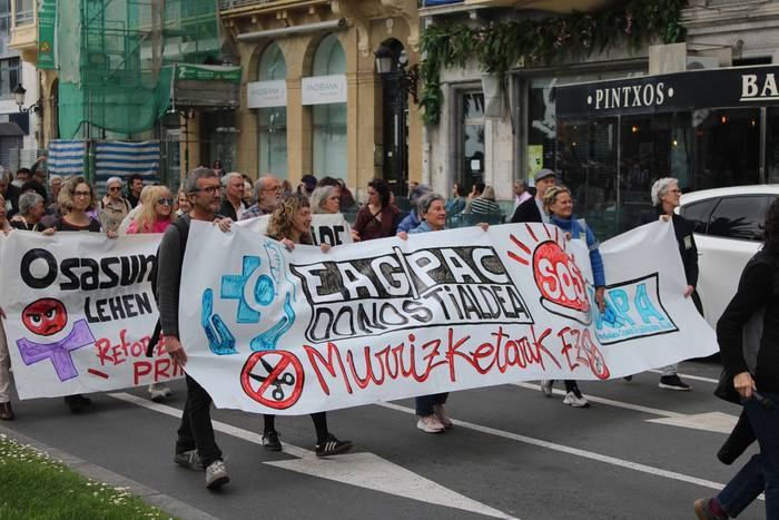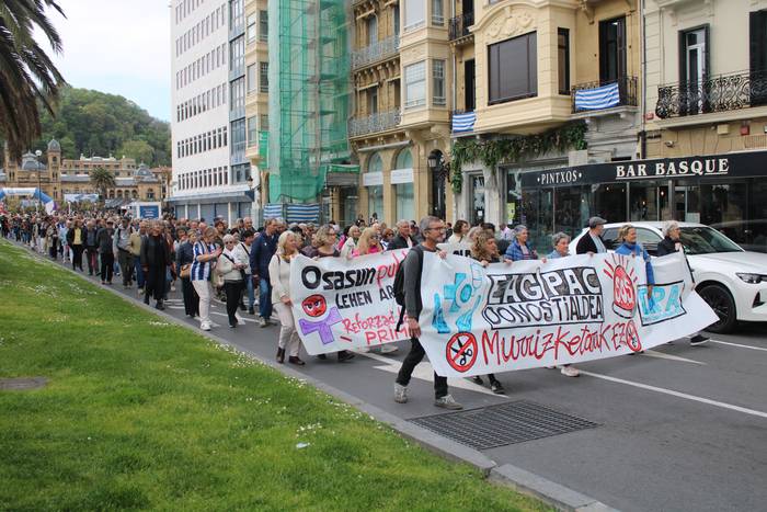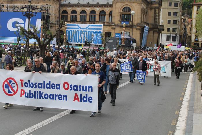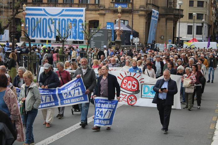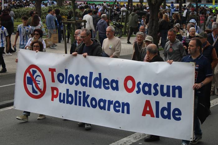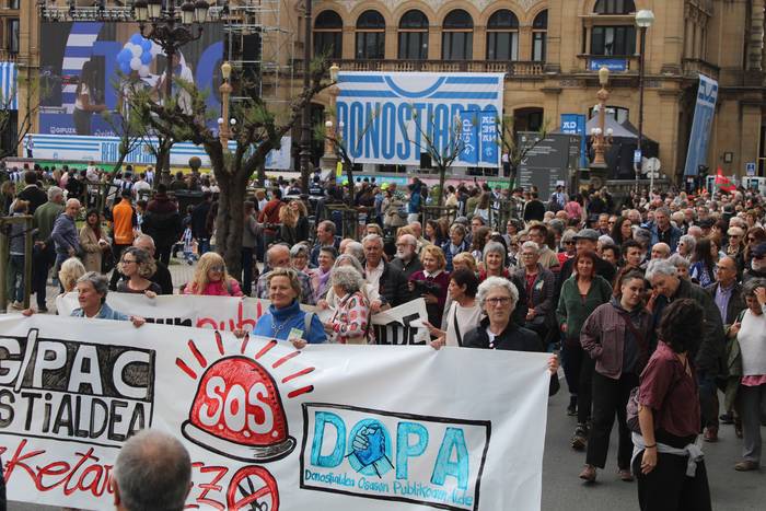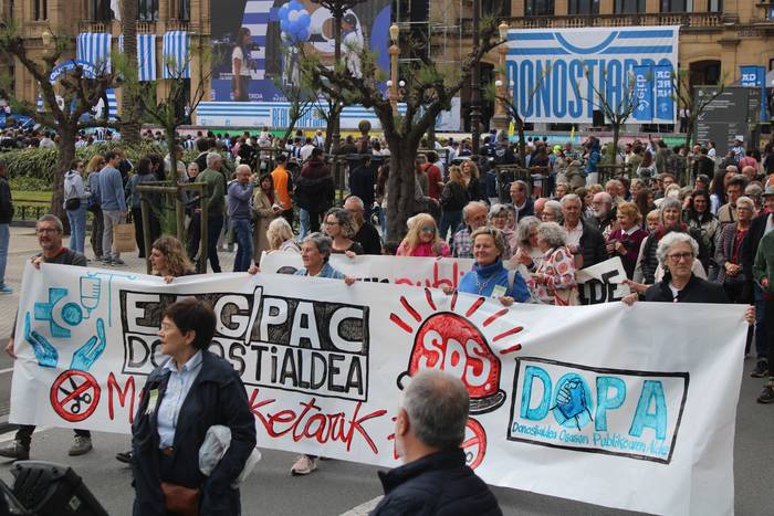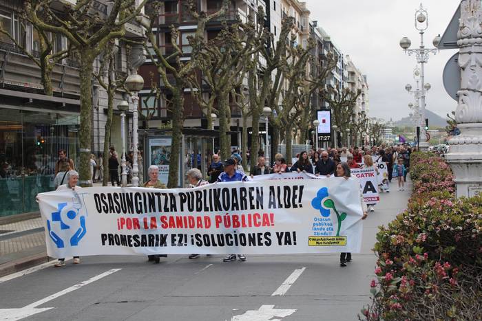 Ezohiko asteburua bizitzen ari dira Donostian, Errealaren Errege Kopako finala tarteko, bereziki, larunbat honetan, apirilaren 18an. Egun honetan egokitu da Osasun Publikoaren Aldeko Herri Plataformek deitutako manifestazioa. Arratsaldeko 17:00etan Bulebarretik irtendako mobilizazioak hiri erdigunea zeharkatu du, abiapuntura itzuli aurretik. Eskualde nahiz udalerri ezberdinetako plataformak bildu ditu deialdiak; tartean, udalerri hau barne hartzen duen Donostialdeko bilgunea nahiz Usurbil mugakide duen Lasarte-Orian bertan osatua dutena. Jendetsua izan da Gipuzkoako hiriburuko protesta ekimena.